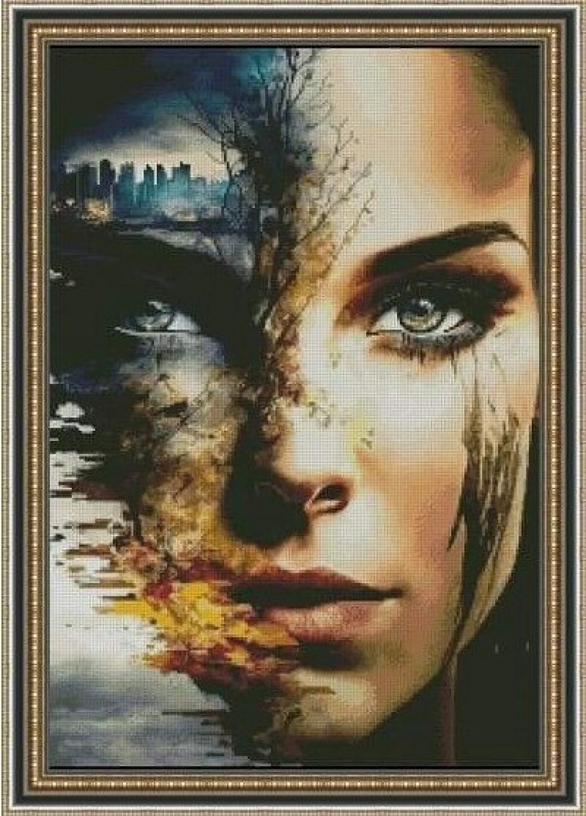 Комплектът на фирма Fantastic-R съдържа панама с игла, черно-бяла схема размер А4 и комплект конци готови за бродиране.
