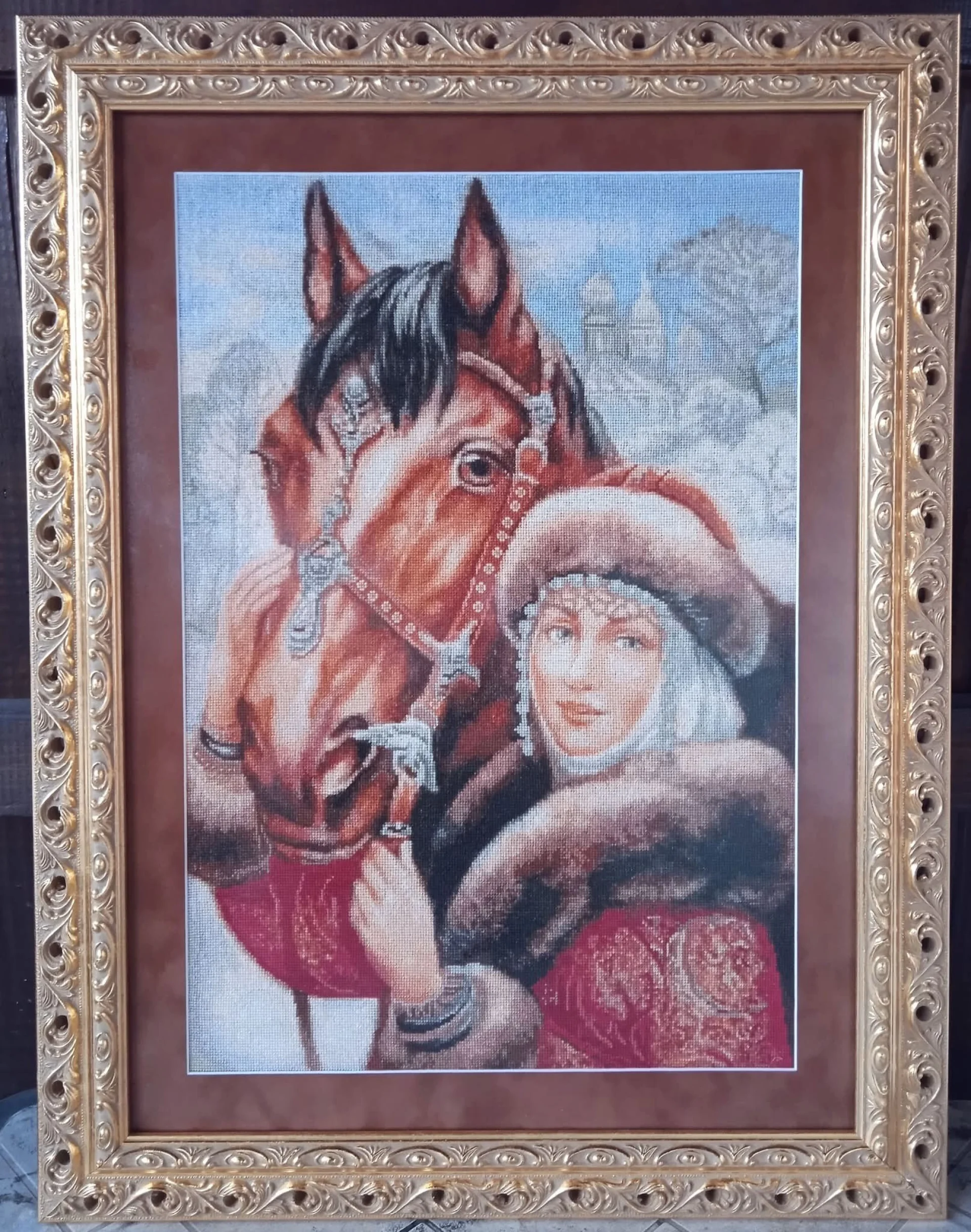 На втора и трета снимка можете да видите гоблена готов рамкиран и отшив без рамка.