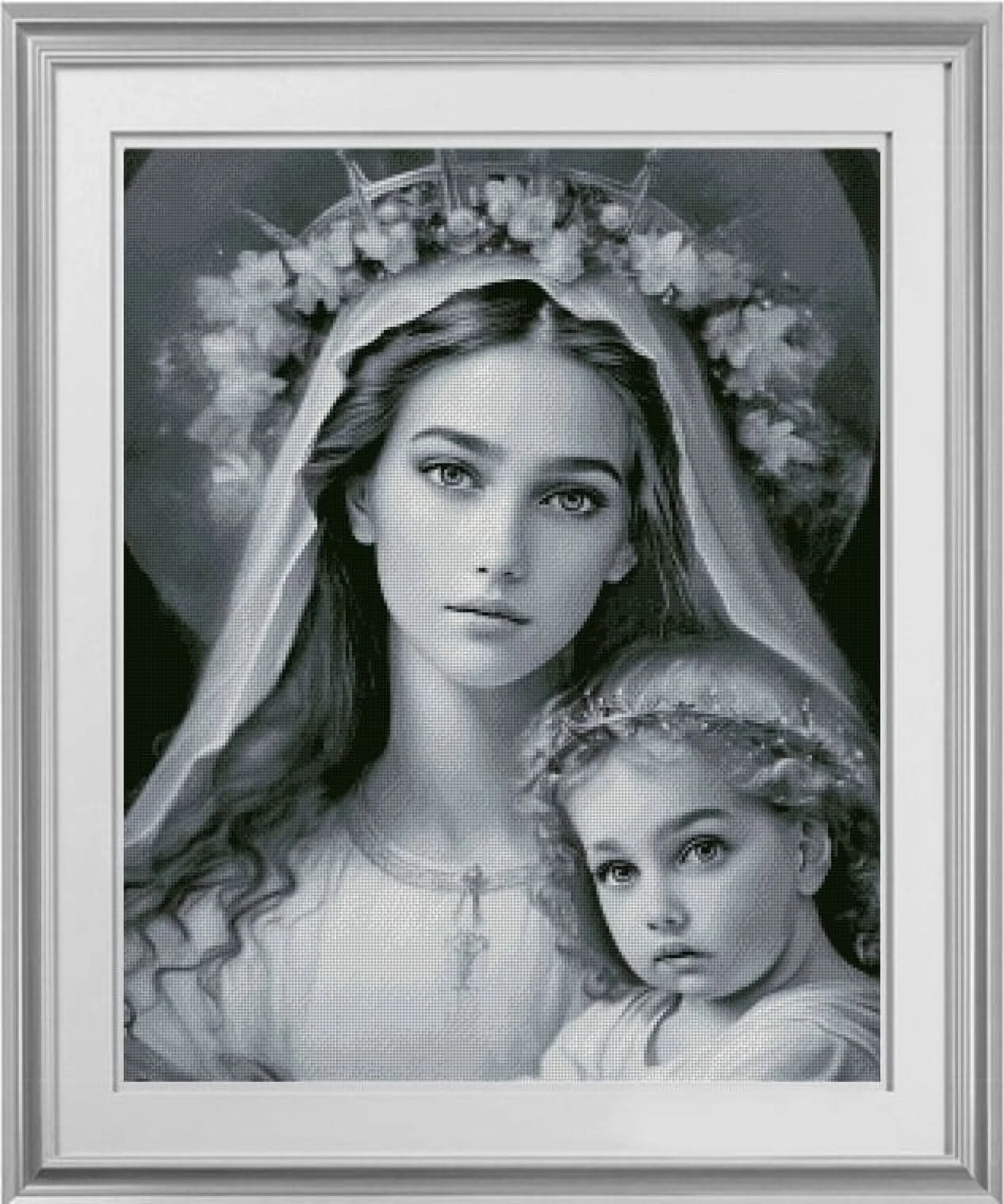 Комплектът на фирма Fantastic-R съдържа панама с игла, черно-бяла схема размер А4 и комплект конци готови за бродиране.