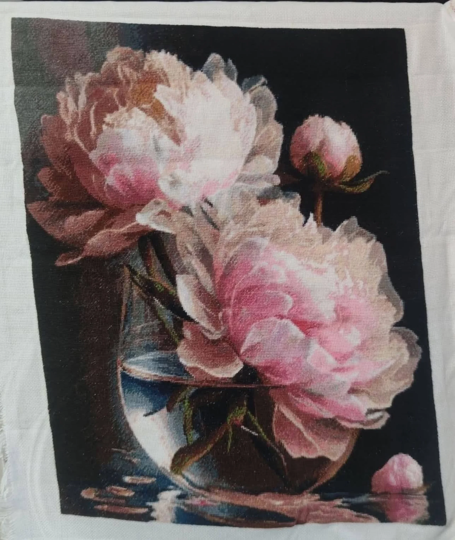 Комплектът на фирма Fantastic-R съдържа панама с игла, черно-бяла схема размер А4 и комплект конци готови за бродиране.