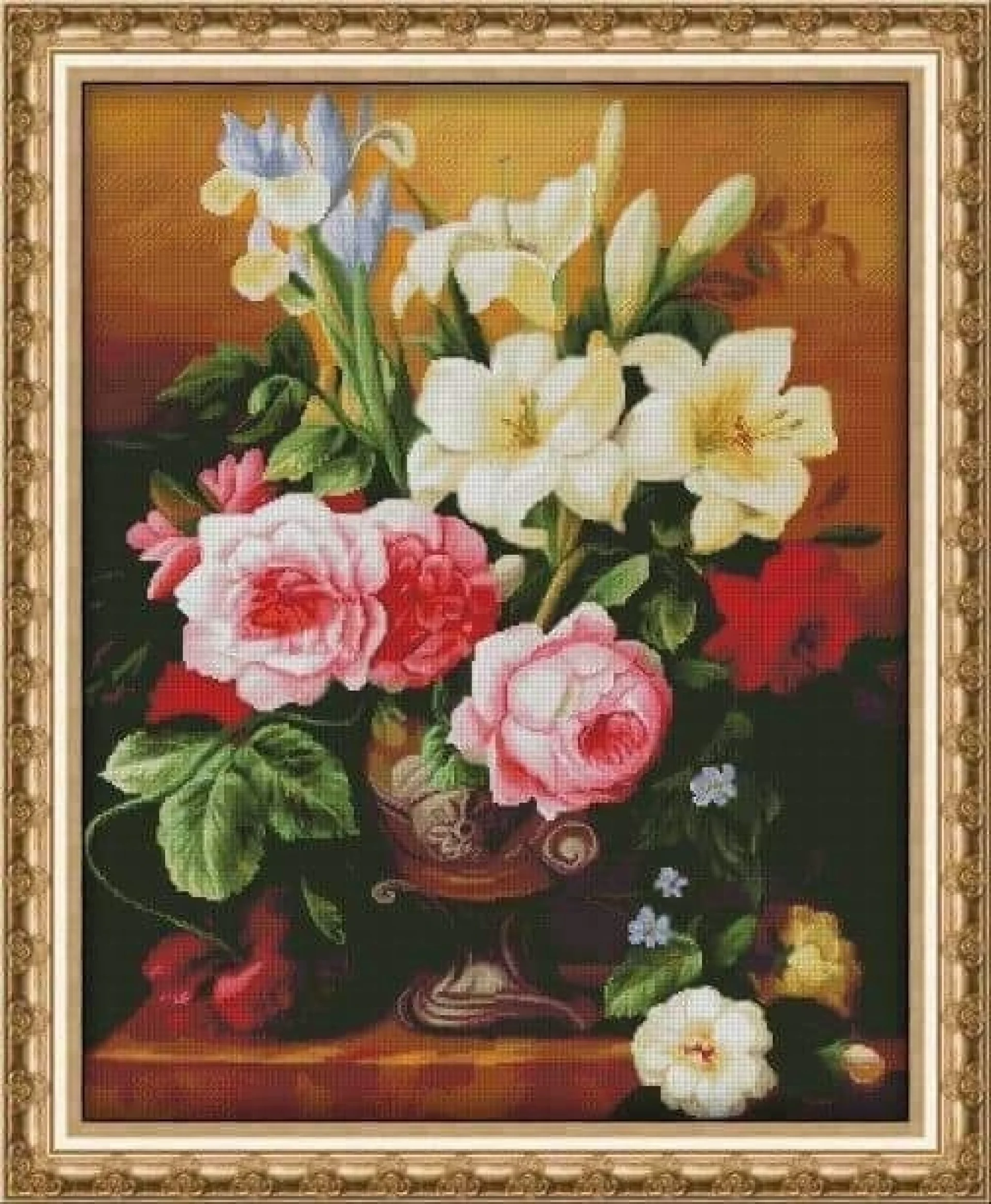 Комплектът на фирма Fantastic-R съдържа панама с игла, черно-бяла схема размер А4 и комплект конци готови за бродиране.