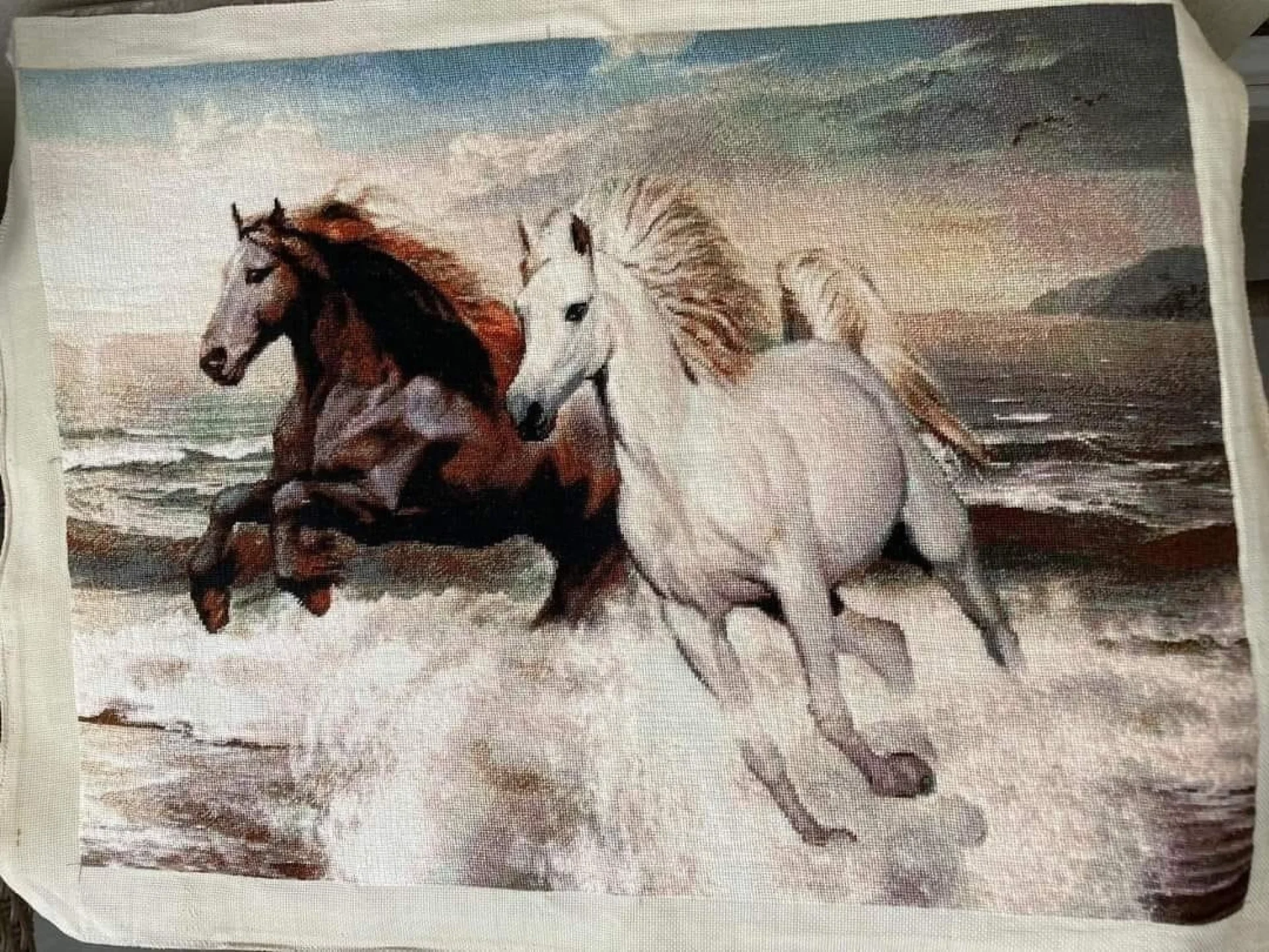 Комплектът на фирма Fantastic-R съдържа панама с игла, черно-бяла схема размер А4 и комплект конци готови за бродиране.