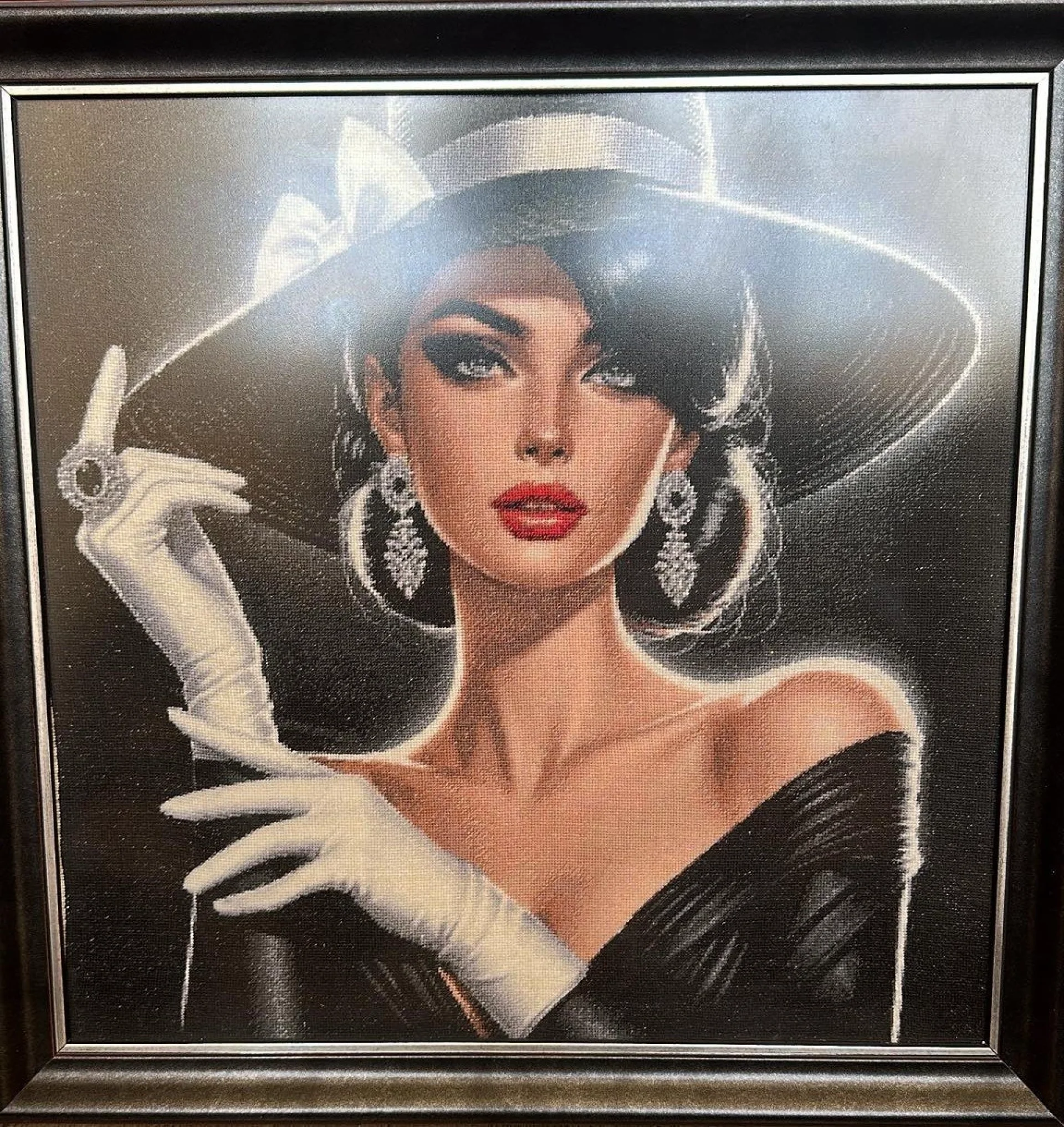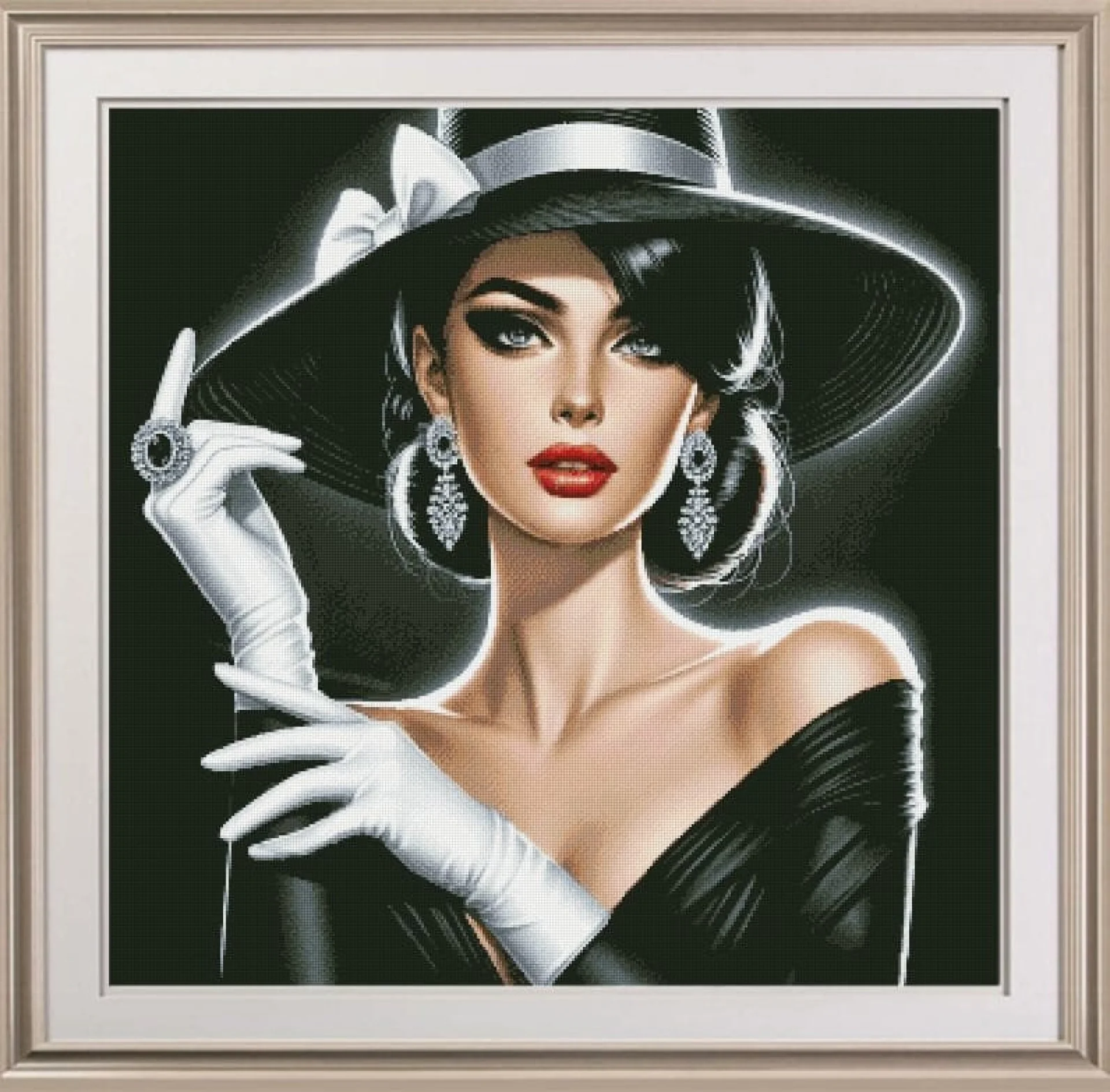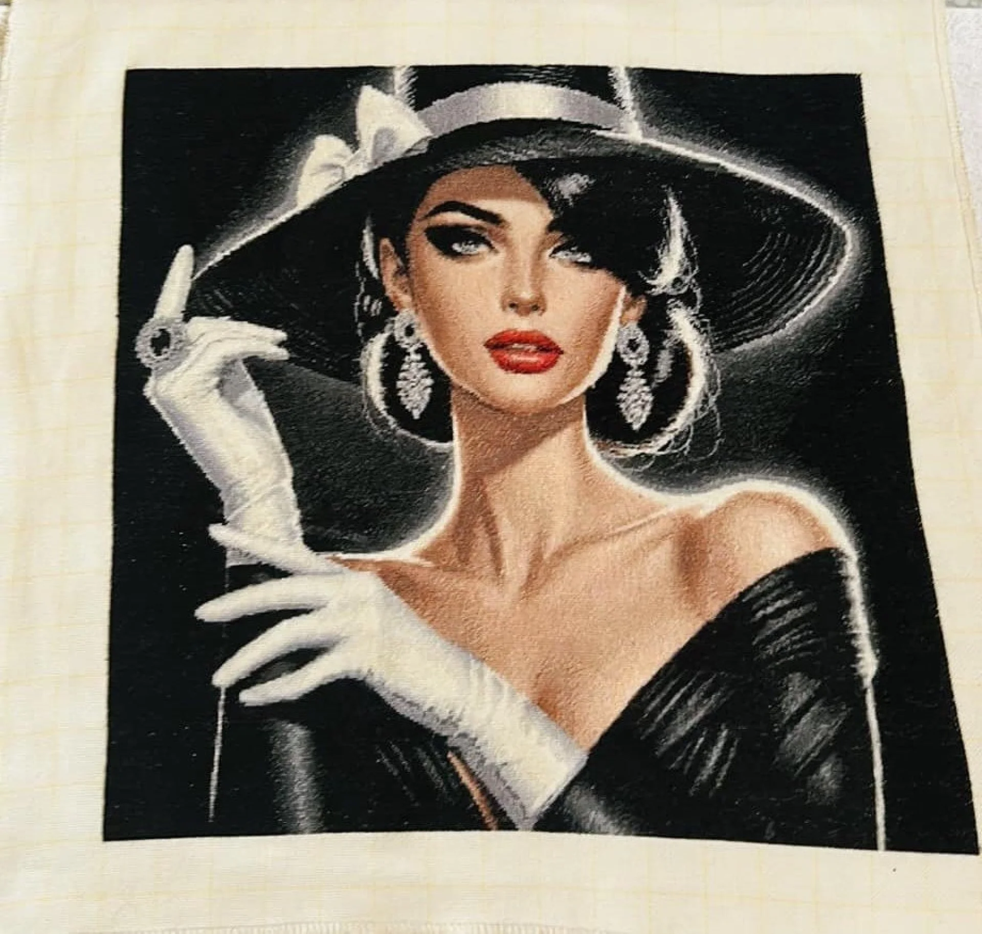 Комплектът на фирма Fantastic-R съдържа панама с игла, черно-бяла схема размер А4 и комплект конци готови за бродиране.