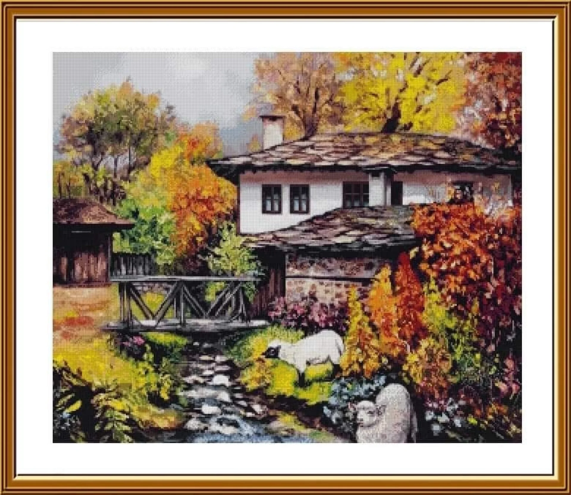 Комплектът на фирма Fantastic-R съдържа панама с игла, черно-бяла схема размер А4 и комплект конци готови за бродиране.