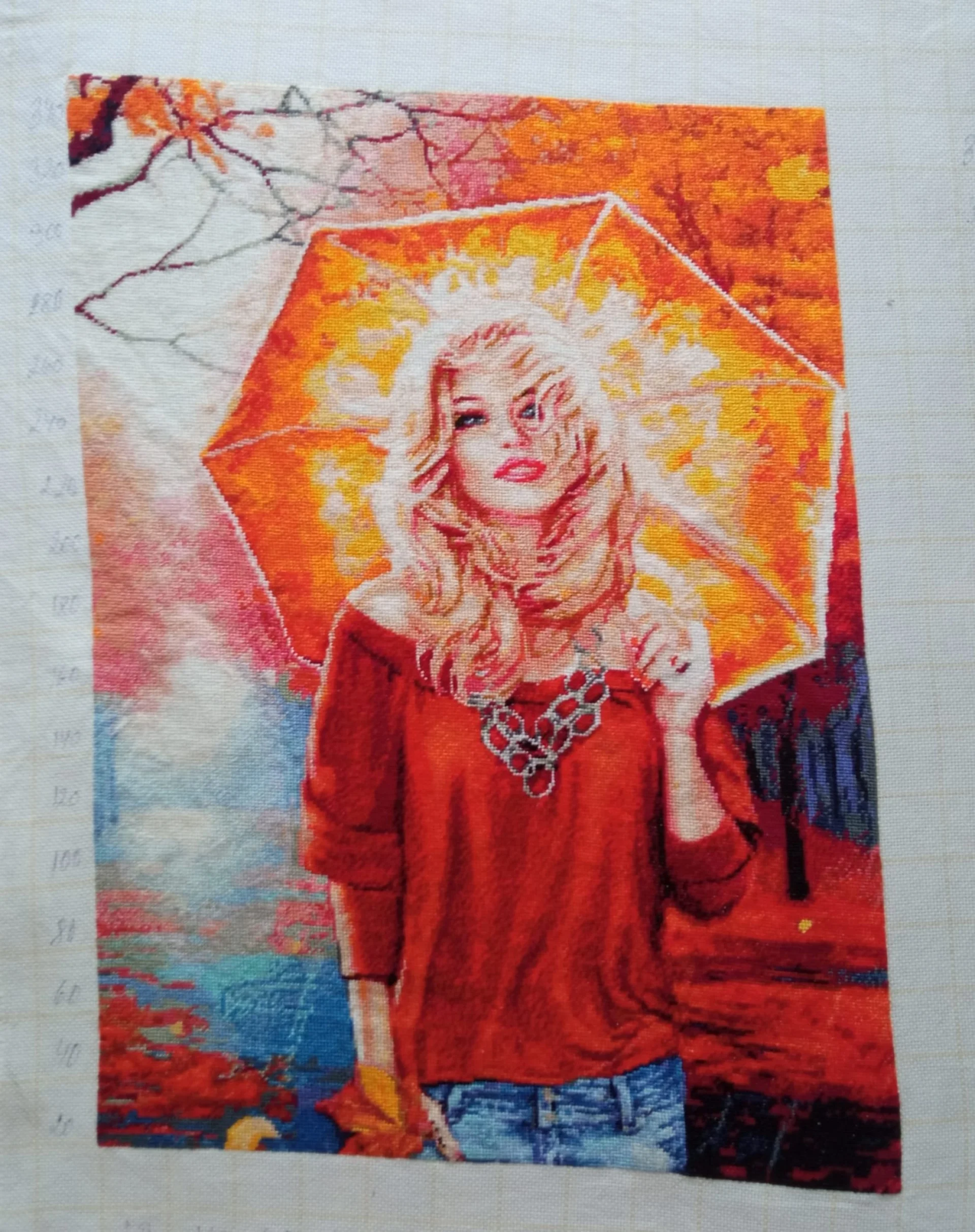 Комплектът на фирма Fantastic-R съдържа панама с игла, черно-бяла схема размер А4 и комплект конци готови за бродиране.