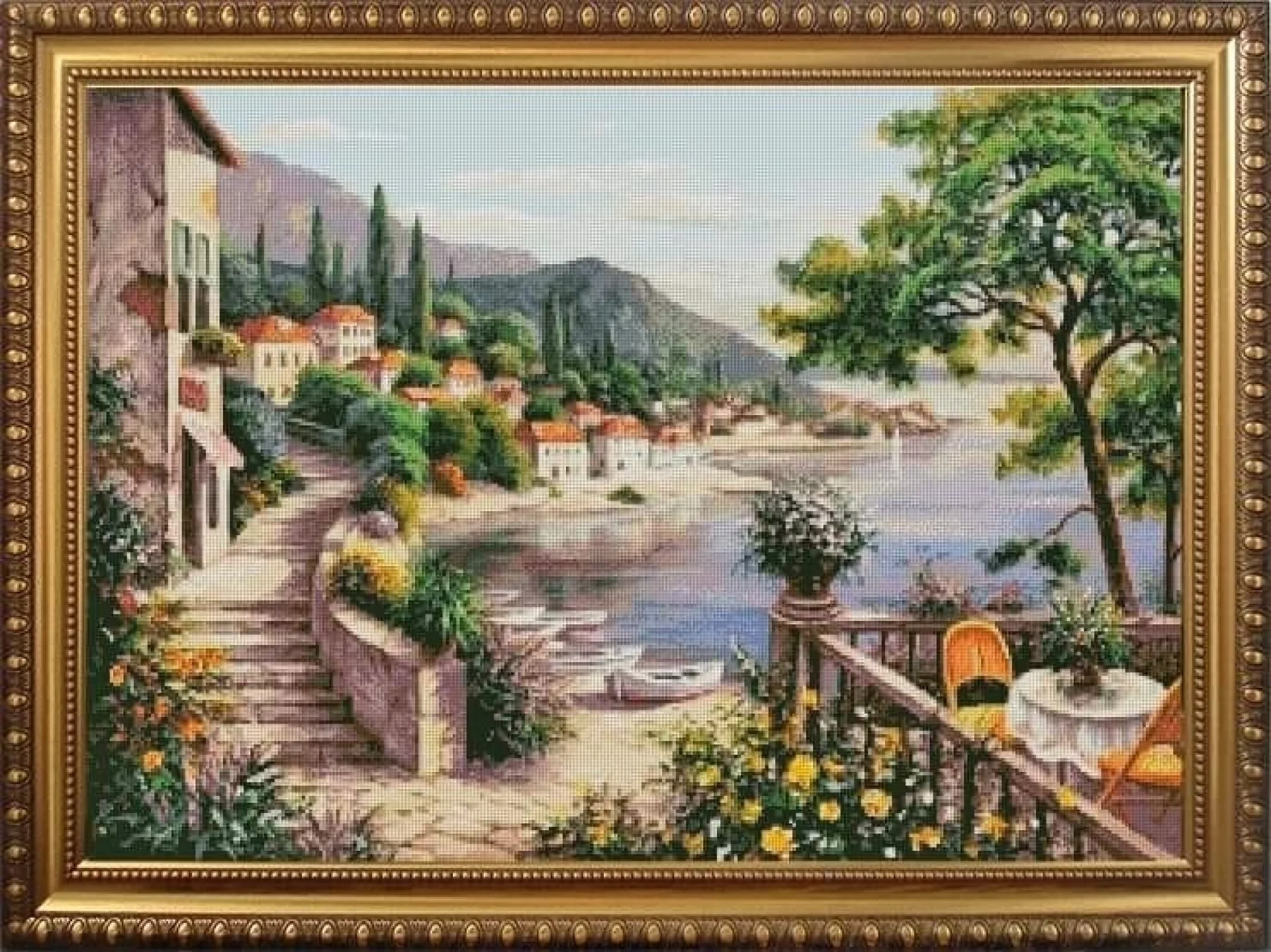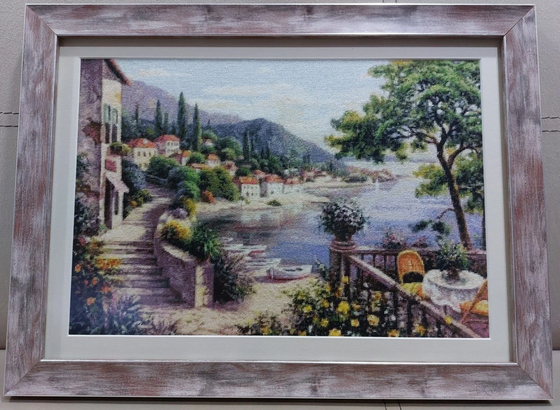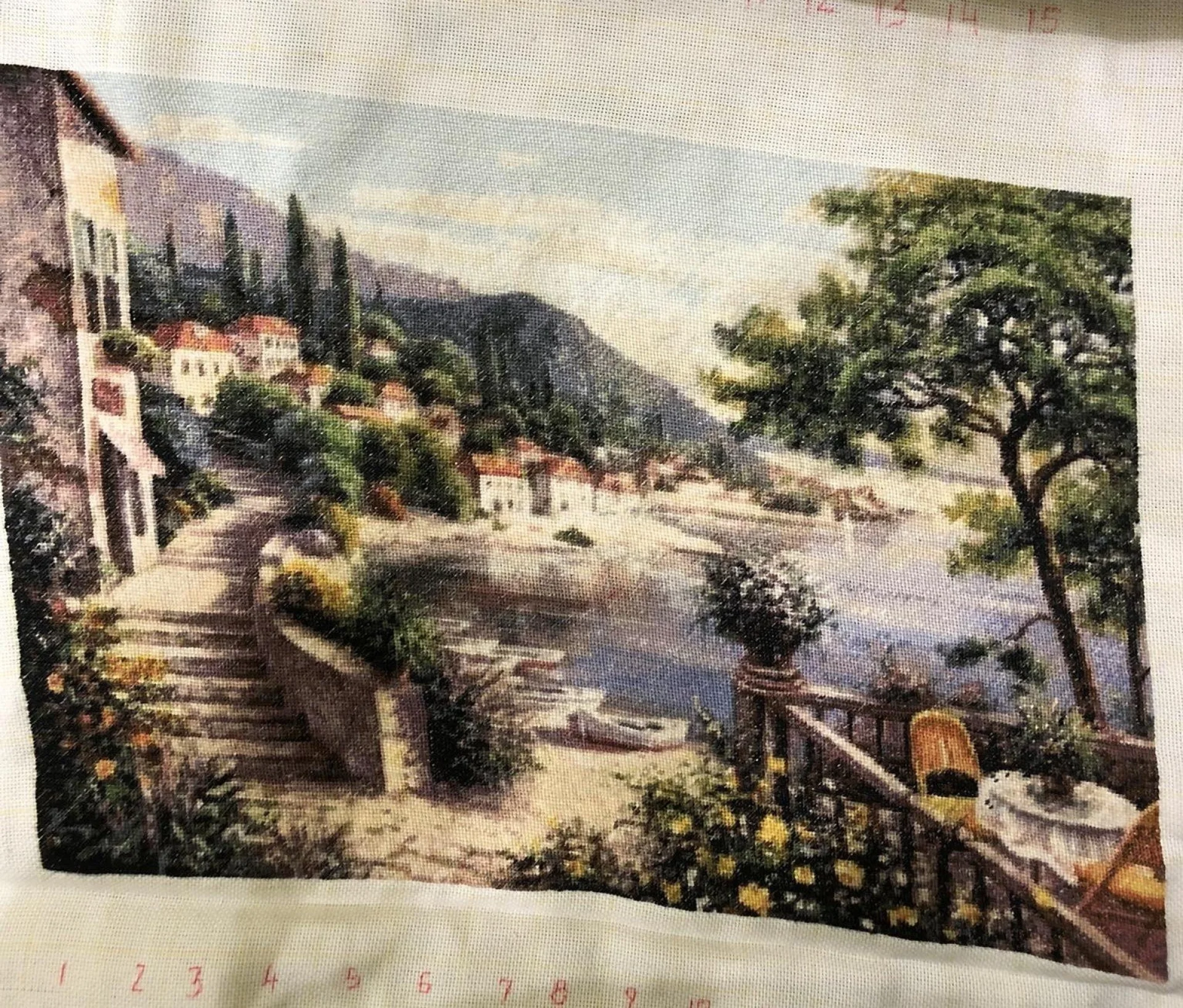 Комплектът на фирма Fantastic-R съдържа панама с игла, черно-бяла схема размер А4 и комплект конци готови за бродиране.