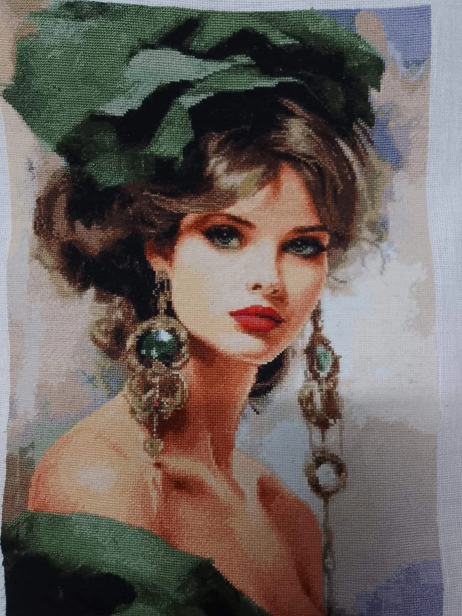 Комплектът на фирма Fantastic-R съдържа панама с игла, черно-бяла схема размер А4 и комплект конци готови за бродиране.