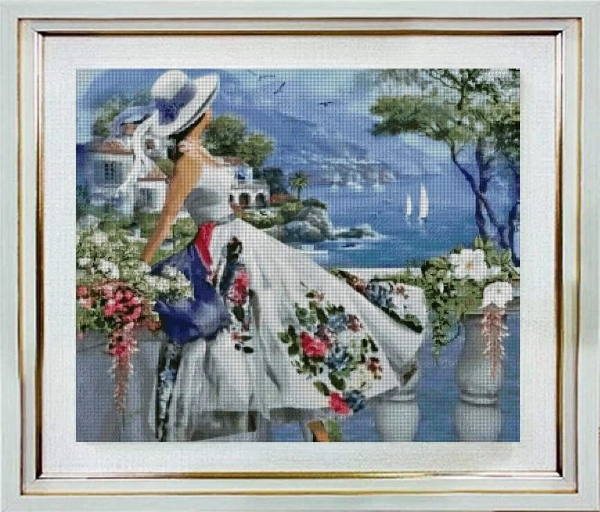 Комплектът на фирма Fantastic-R съдържа панама с игла, черно-бяла схема размер А4 и комплект конци готови за бродиране.