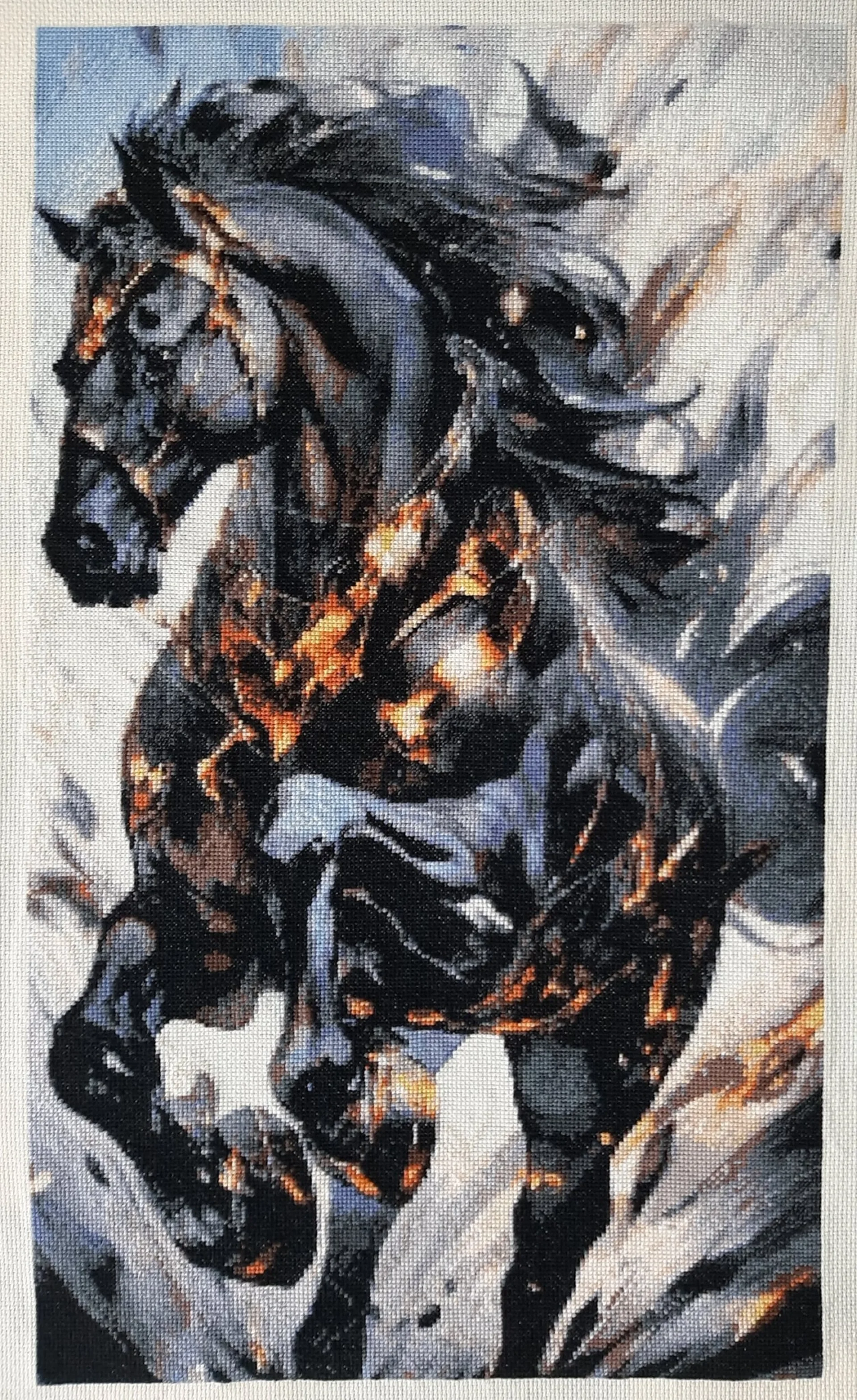 Комплектът на фирма Fantastic-R съдържа панама с игла, черно-бяла схема размер А4 и комплект конци готови за бродиране.