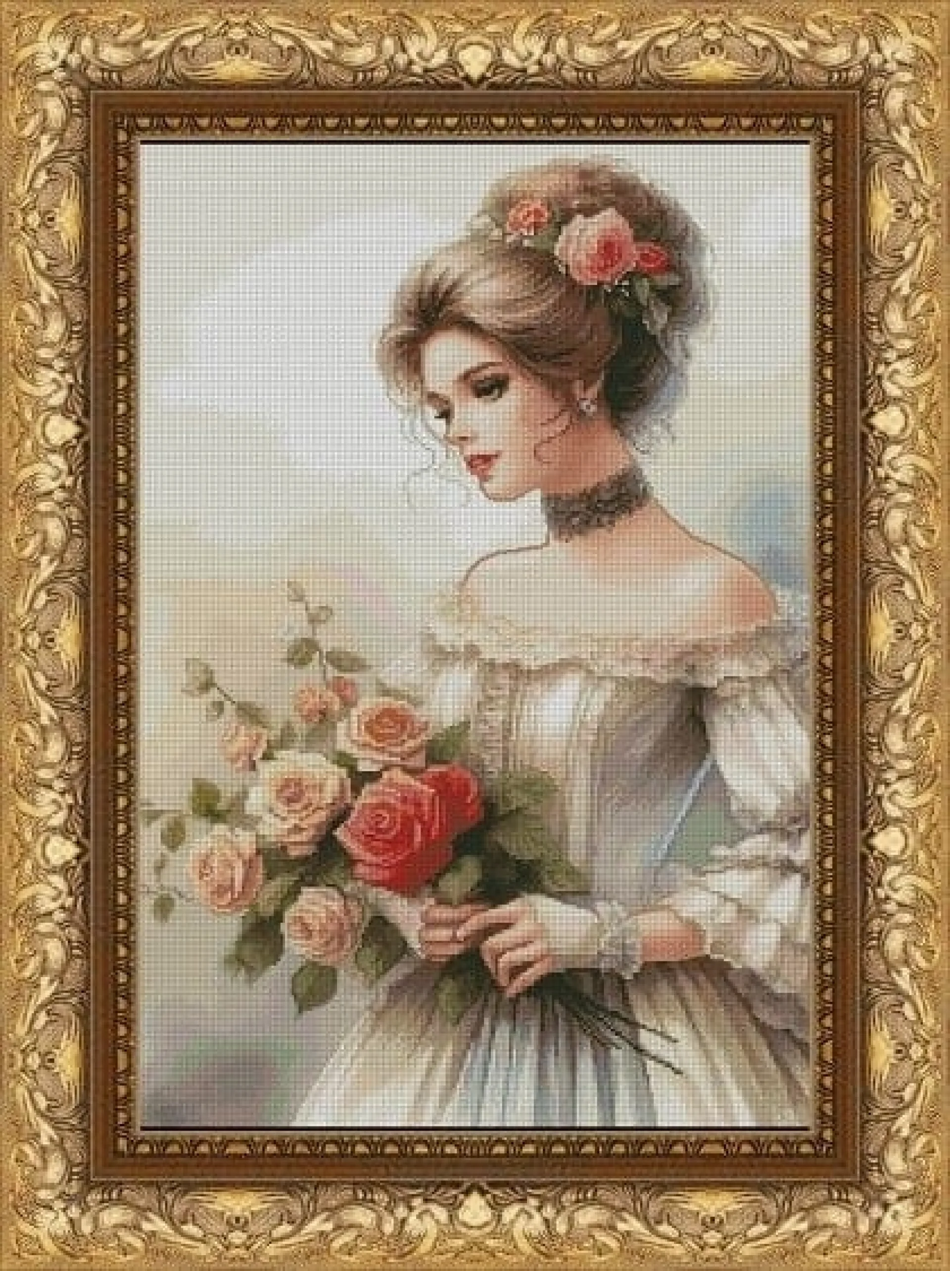 Комплектът на фирма Fantastic-R съдържа панама с игла, черно-бяла схема размер А4 и комплект конци готови за бродиране.