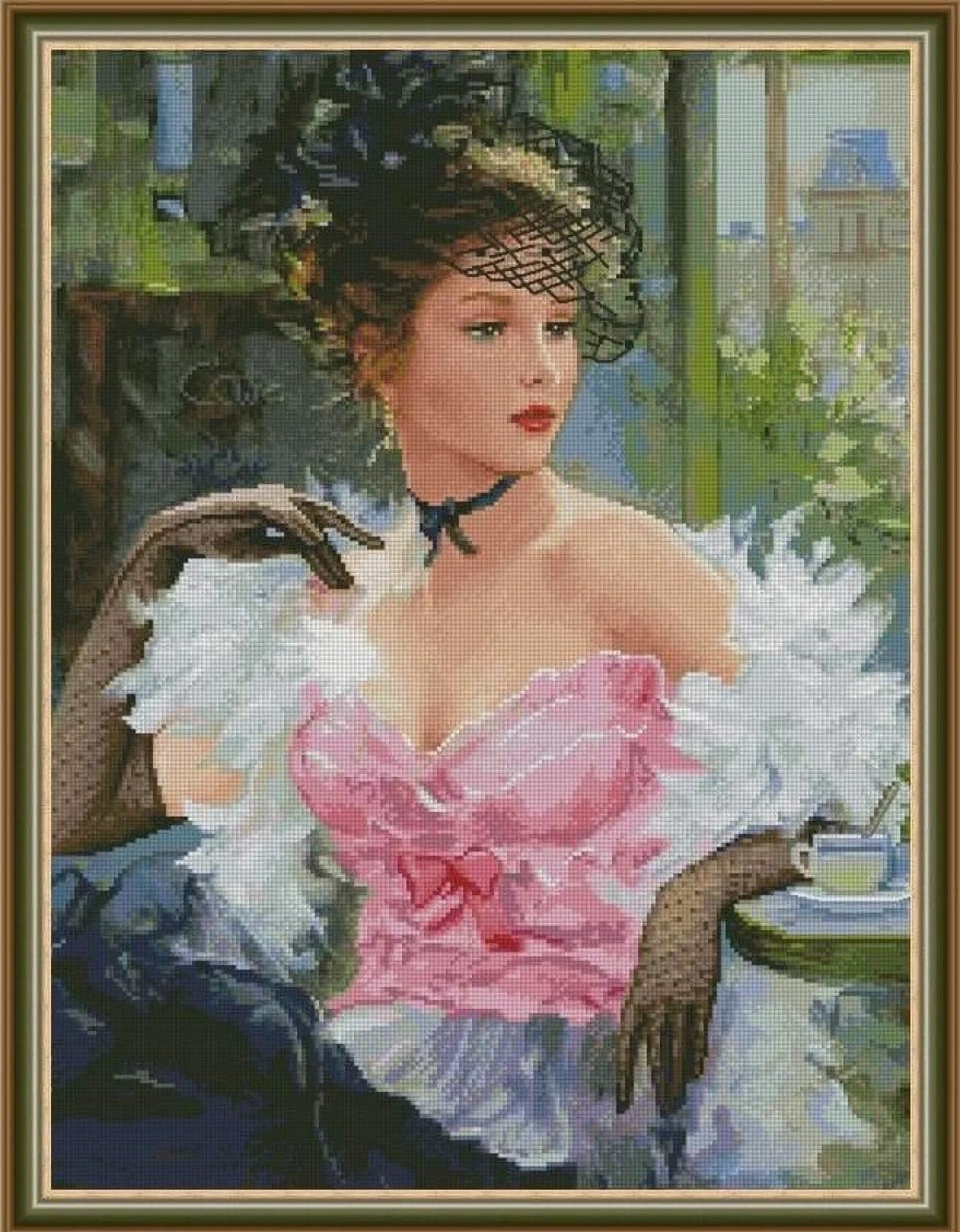 Комплектът на фирма Fantastic-R съдържа панама с игла, черно-бяла схема размер А4 и комплект конци готови за бродиране.