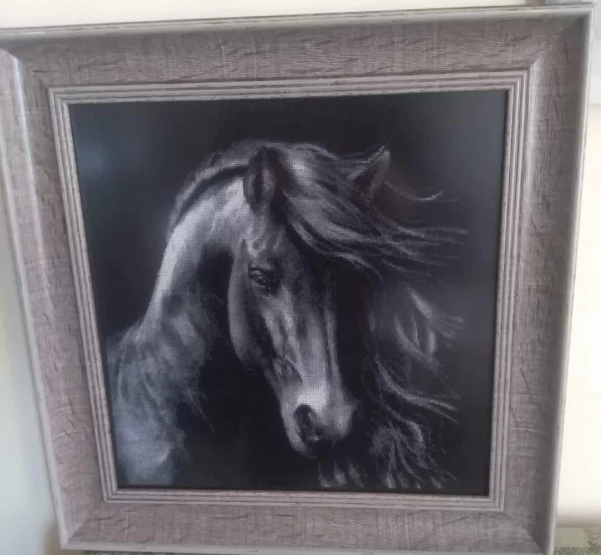 Комплектът на фирма Fantastic-R съдържа панама с игла, черно-бяла схема размер А4 и комплект конци готови за бродиране.
