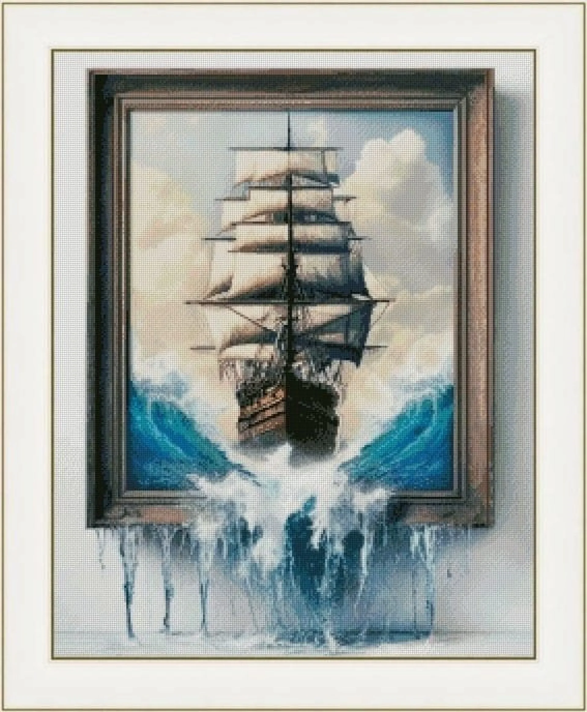 Комплектът на фирма Fantastic-R съдържа панама с игла, черно-бяла схема размер А4 и комплект конци готови за бродиране.