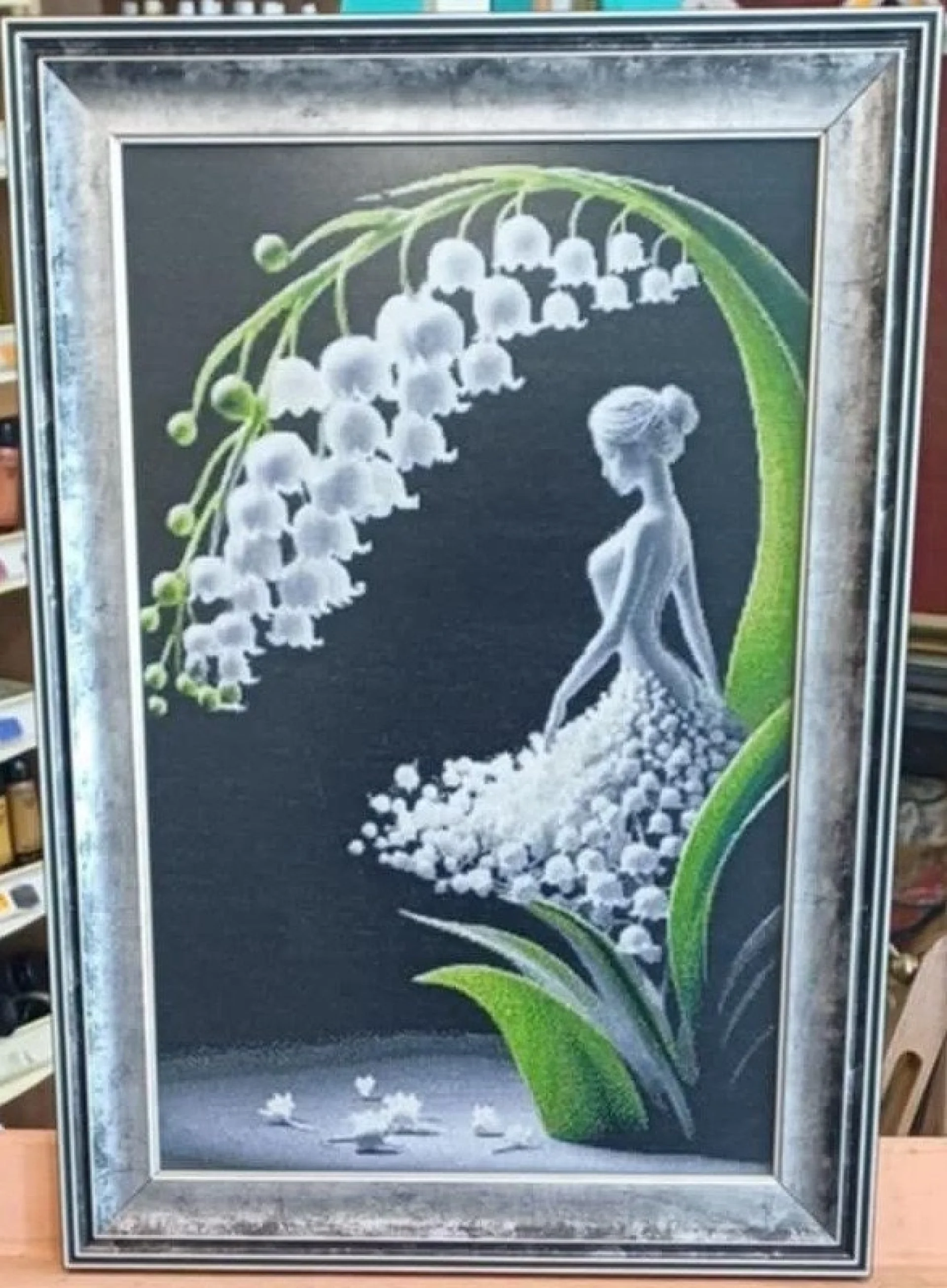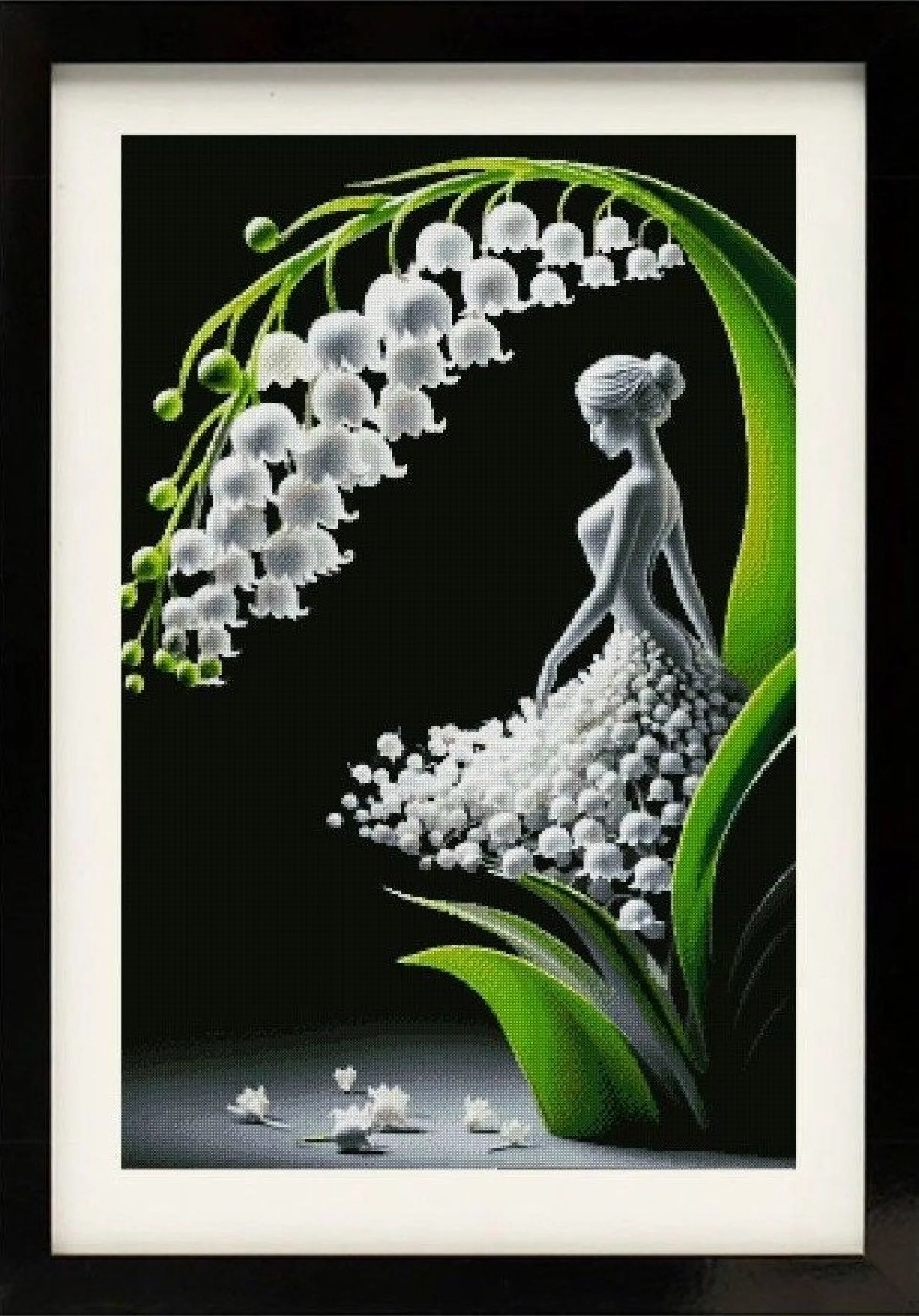 Комплектът на фирма Fantastic-R съдържа панама с игла, черно-бяла схема размер А4 и комплект конци готови за бродиране.