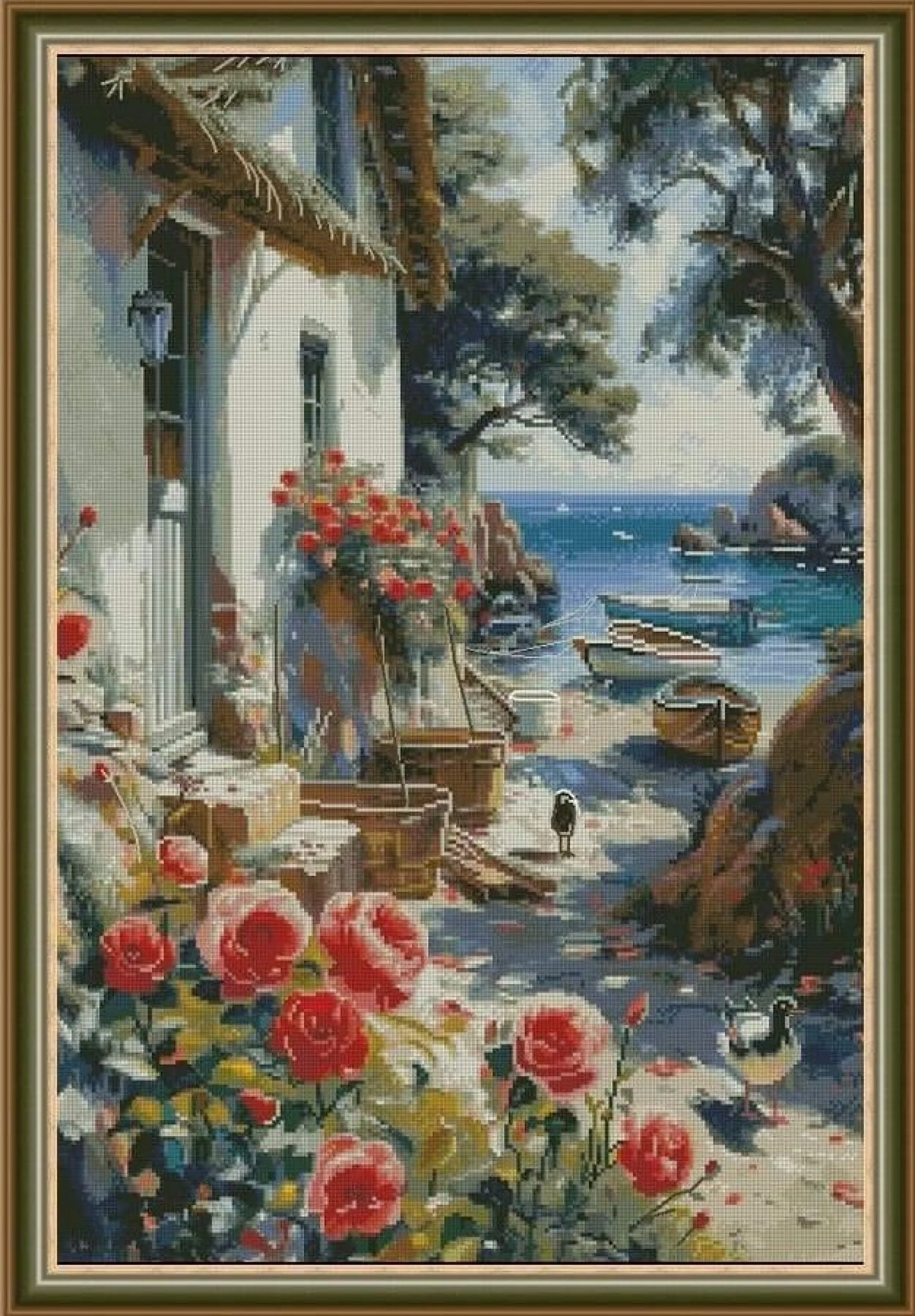 Комплектът на фирма Fantastic-R съдържа панама с игла, черно-бяла схема размер А4 и комплект конци готови за бродиране.