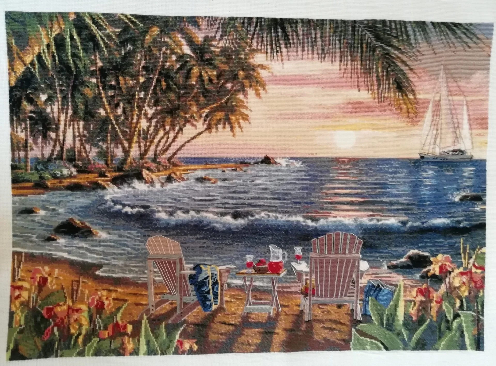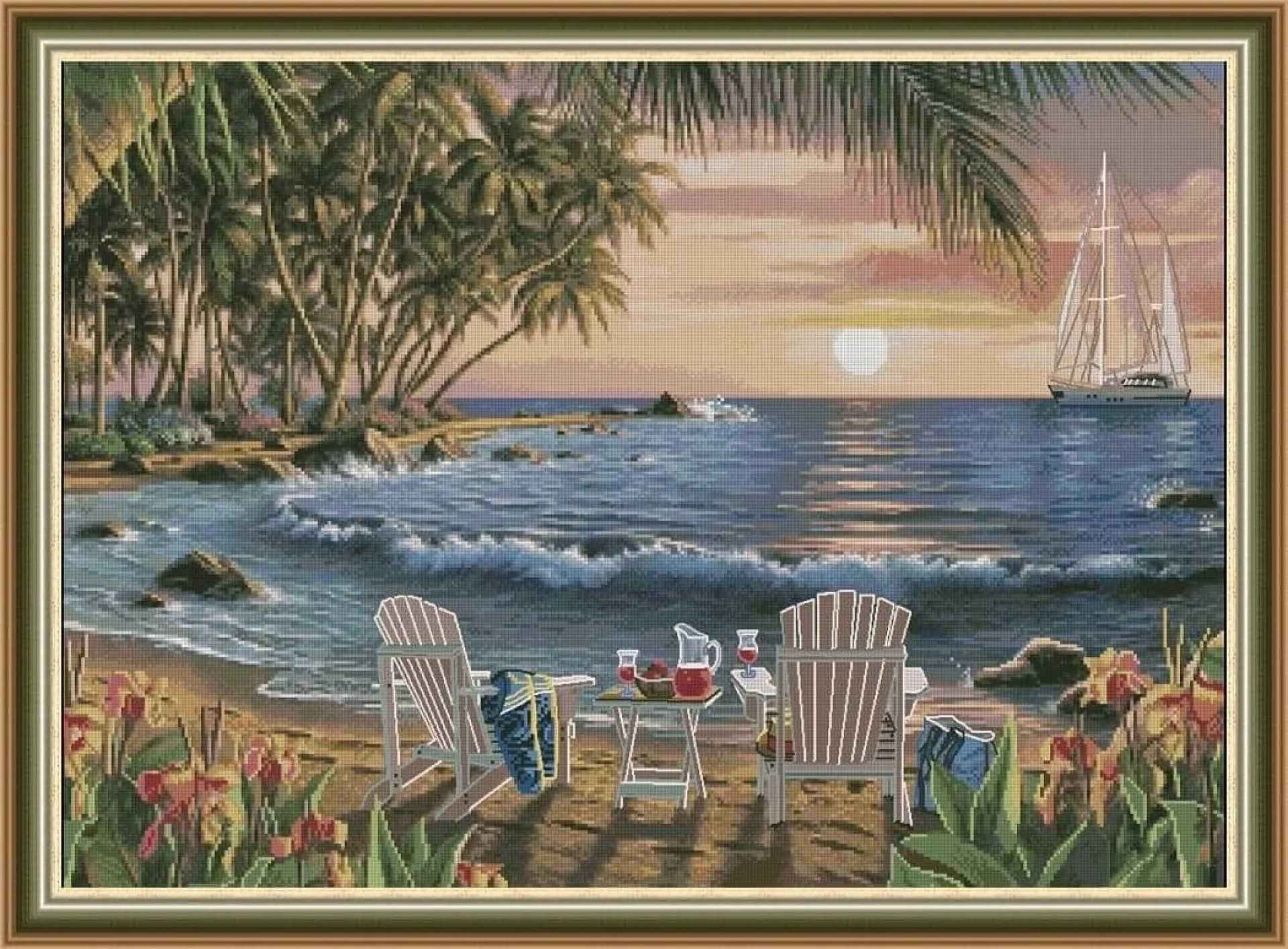 Комплектът на фирма Fantastic-R съдържа панама с игла, черно-бяла схема размер А4 и комплект конци готови за бродиране.