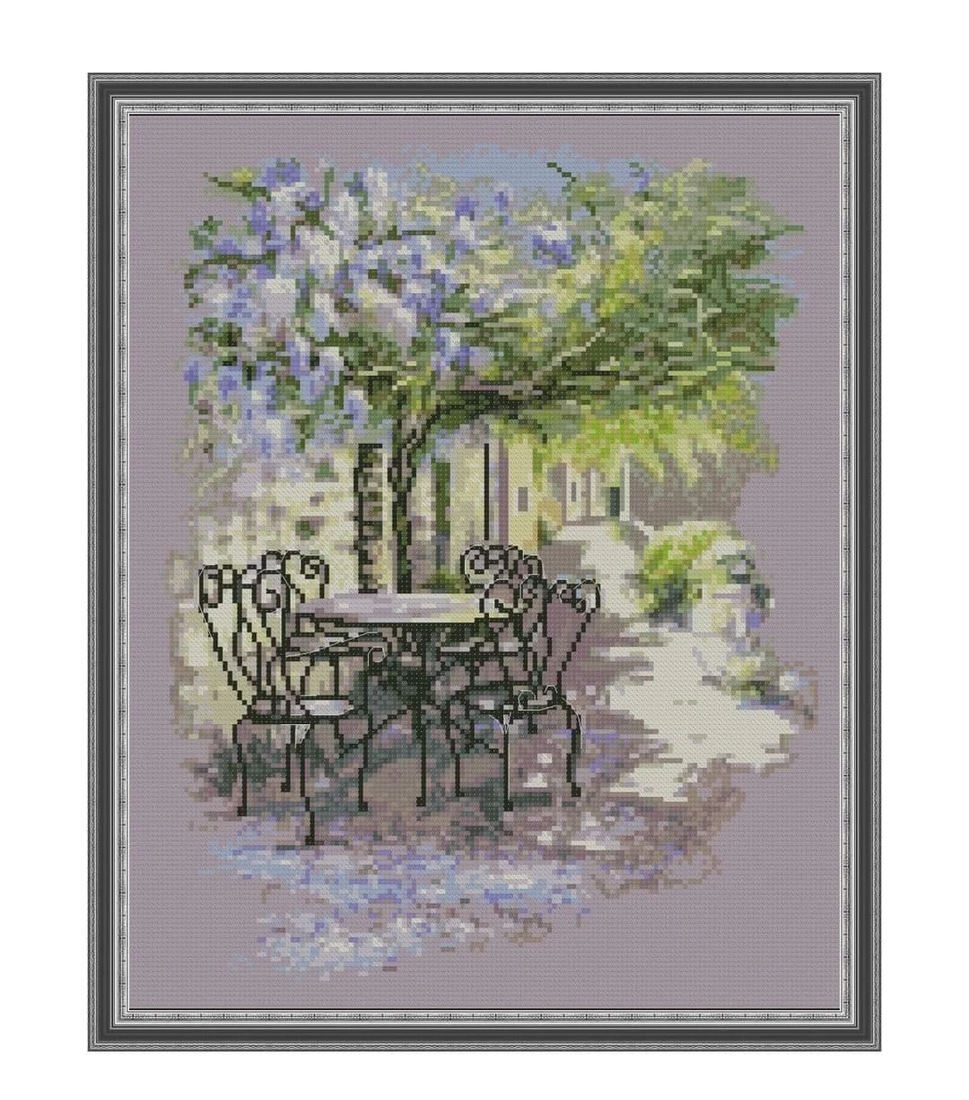 Комплектът на фирма Fantastic-R съдържа панама с игла, черно-бяла схема размер А4 и комплект конци готови за бродиране.