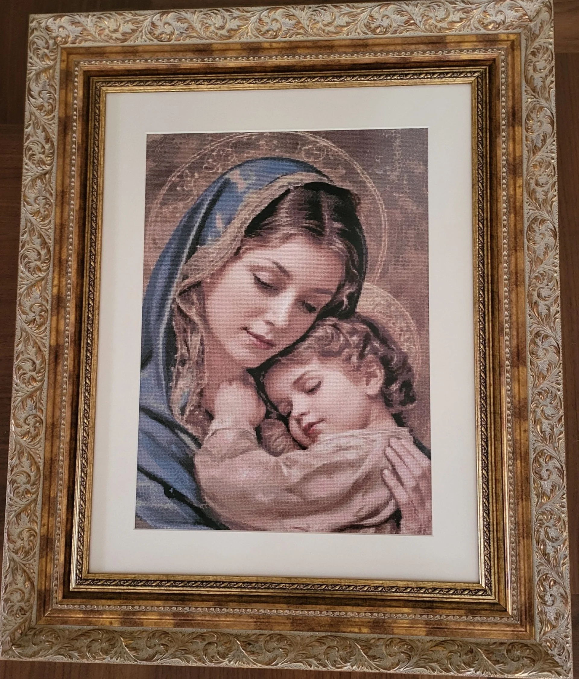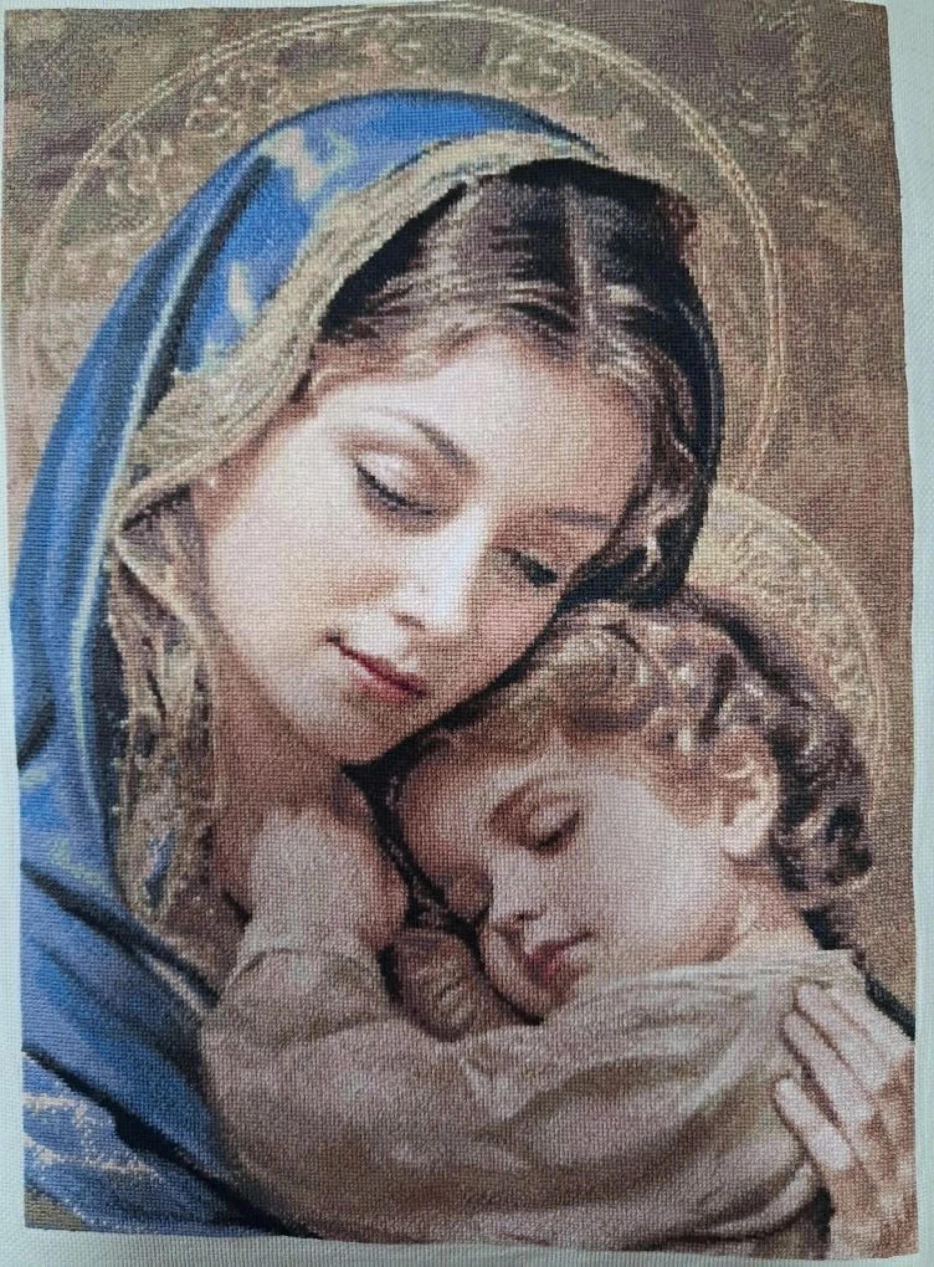 Комплектът на фирма Fantastic-R съдържа панама с игла, черно-бяла схема размер А4 и комплект конци готови за бродиране.