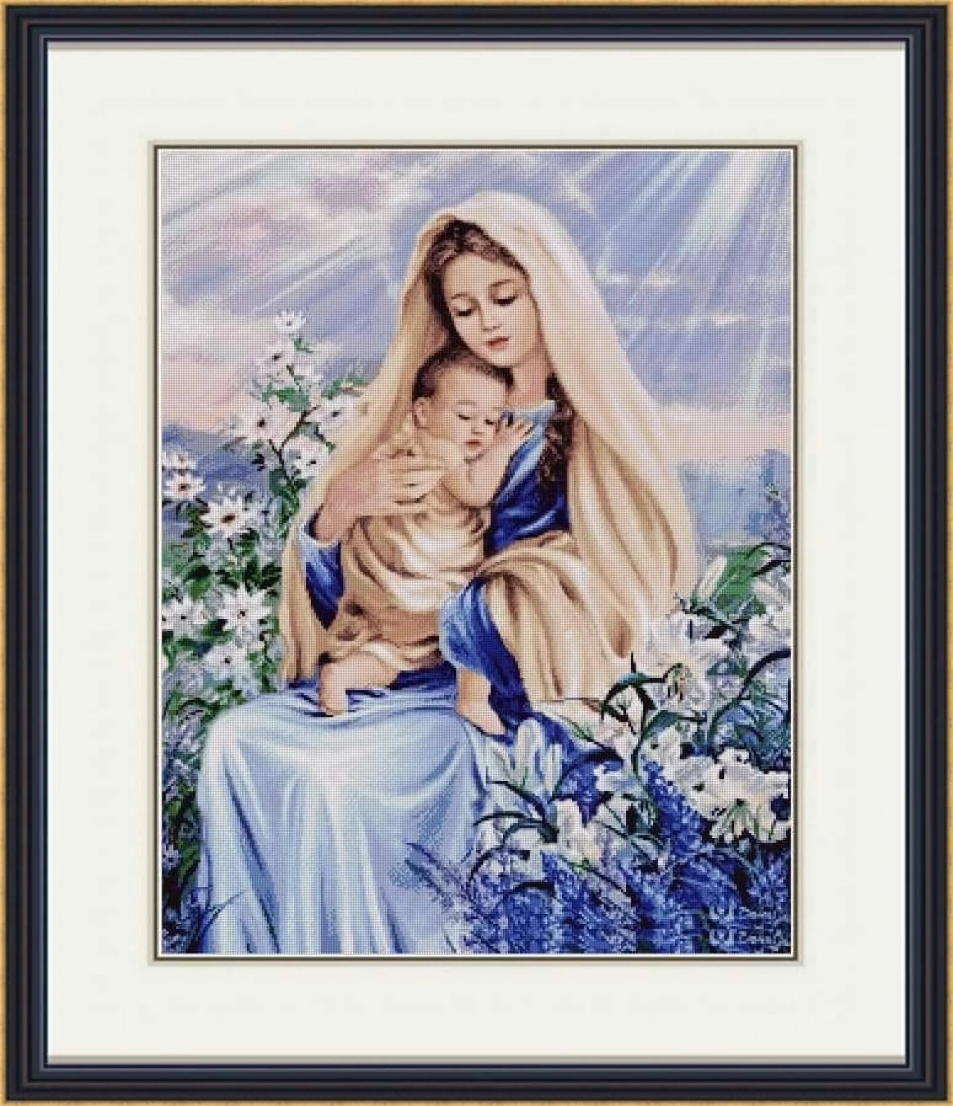 Комплектът на фирма Fantastic-R съдържа панама с игла, черно-бяла схема размер А4 и комплект конци готови за бродиране.