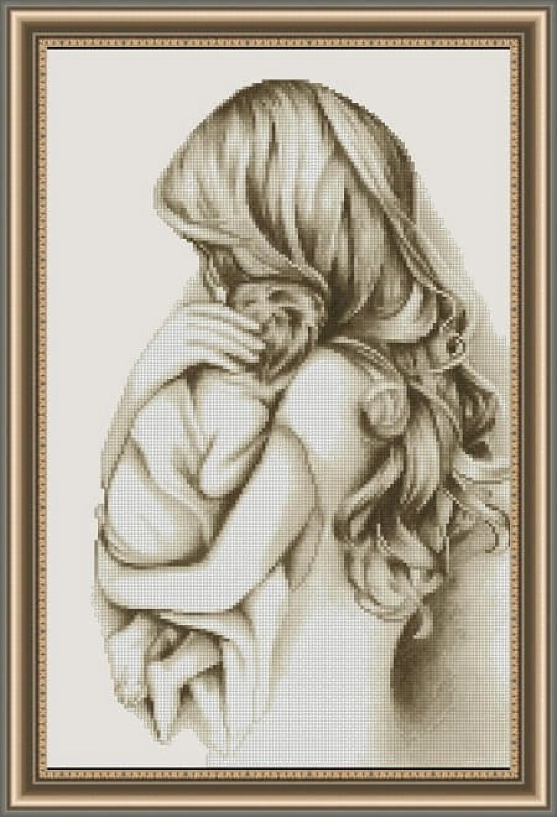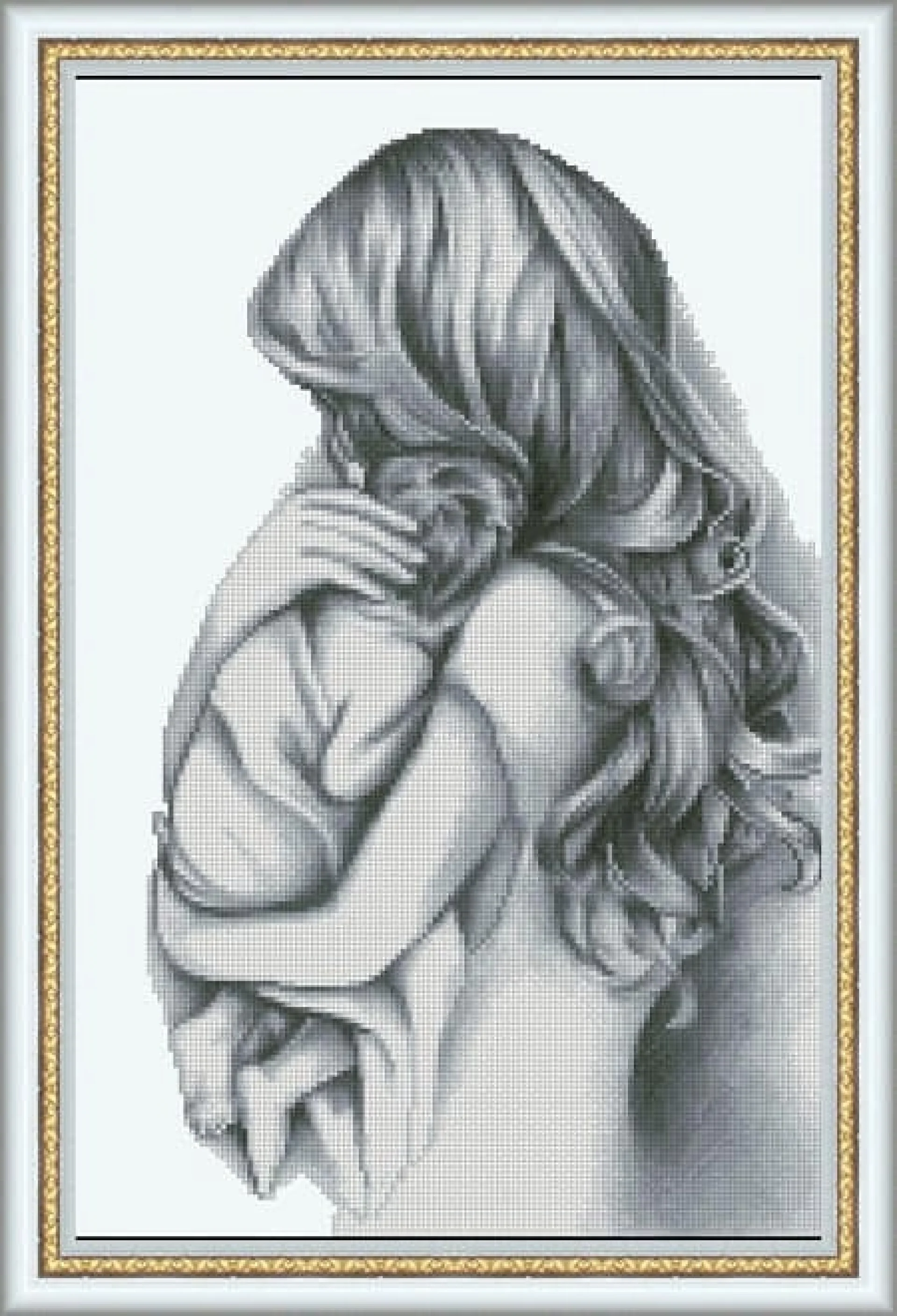 Комплектът на фирма Fantastic-R съдържа панама с игла, черно-бяла схема размер А4 и комплект конци готови за бродиране.