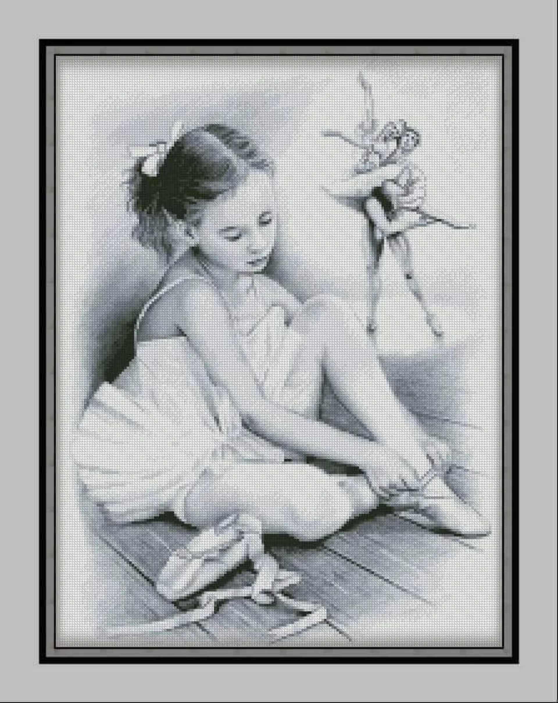 Комплектът на фирма Fantastic-R съдържа панама с игла, черно-бяла схема размер А4 и комплект конци готови за бродиране.