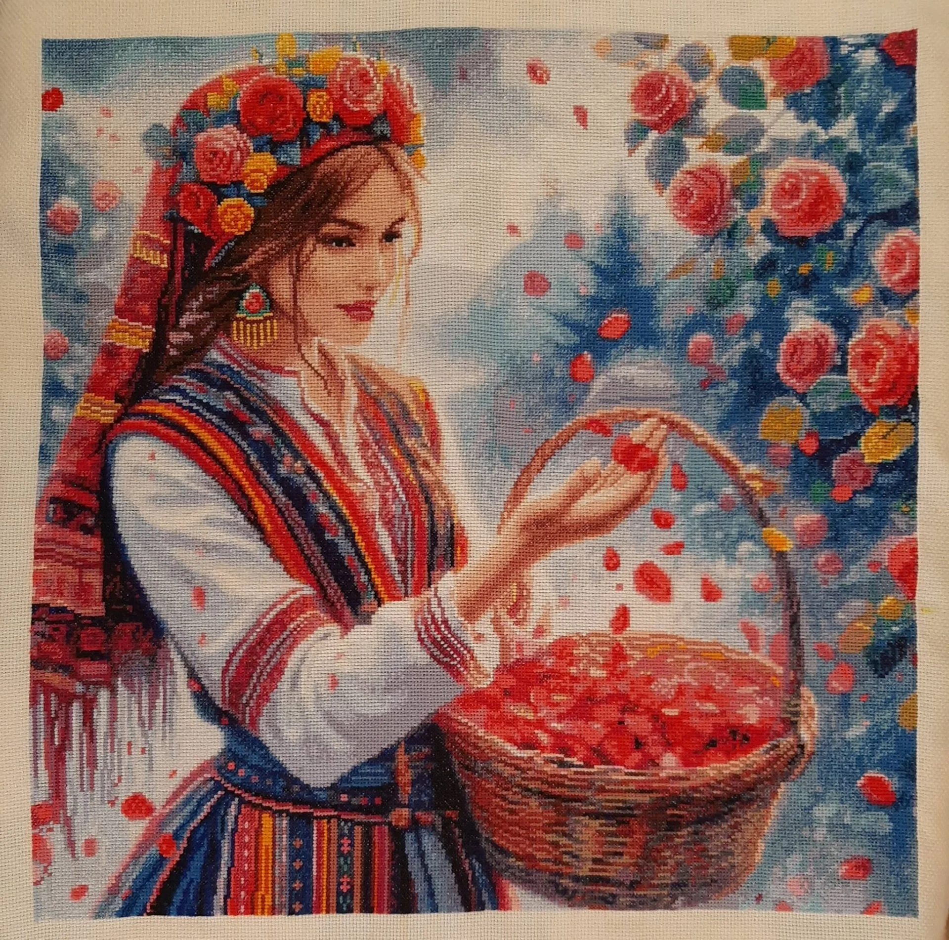 Комплектът на фирма Fantastic-R съдържа панама с игла, черно-бяла схема размер А4 и комплект конци готови за бродиране.