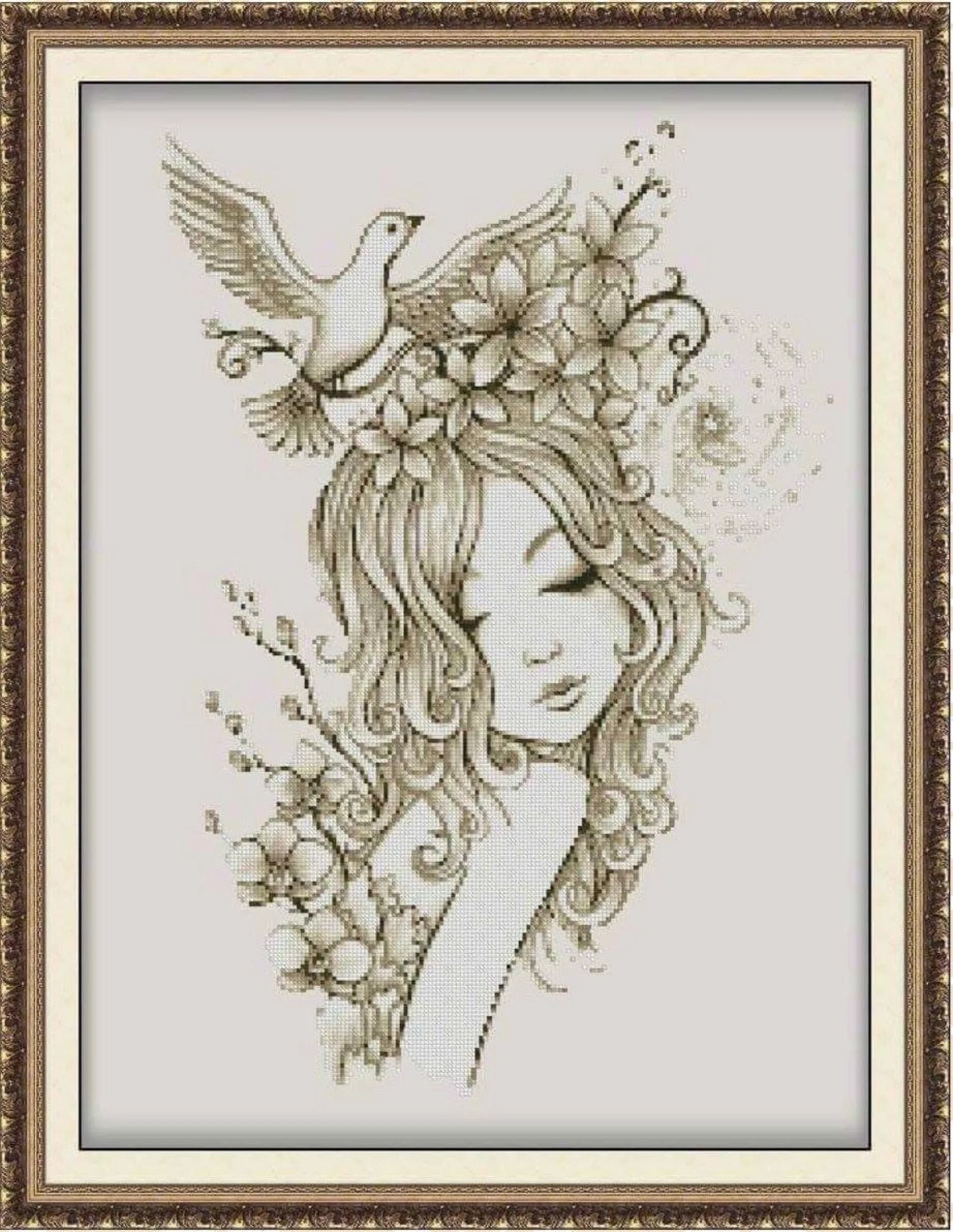 Комплектът на фирма Fantastic-R съдържа панама с игла, черно-бяла схема размер А4 и комплект конци готови за бродиране.