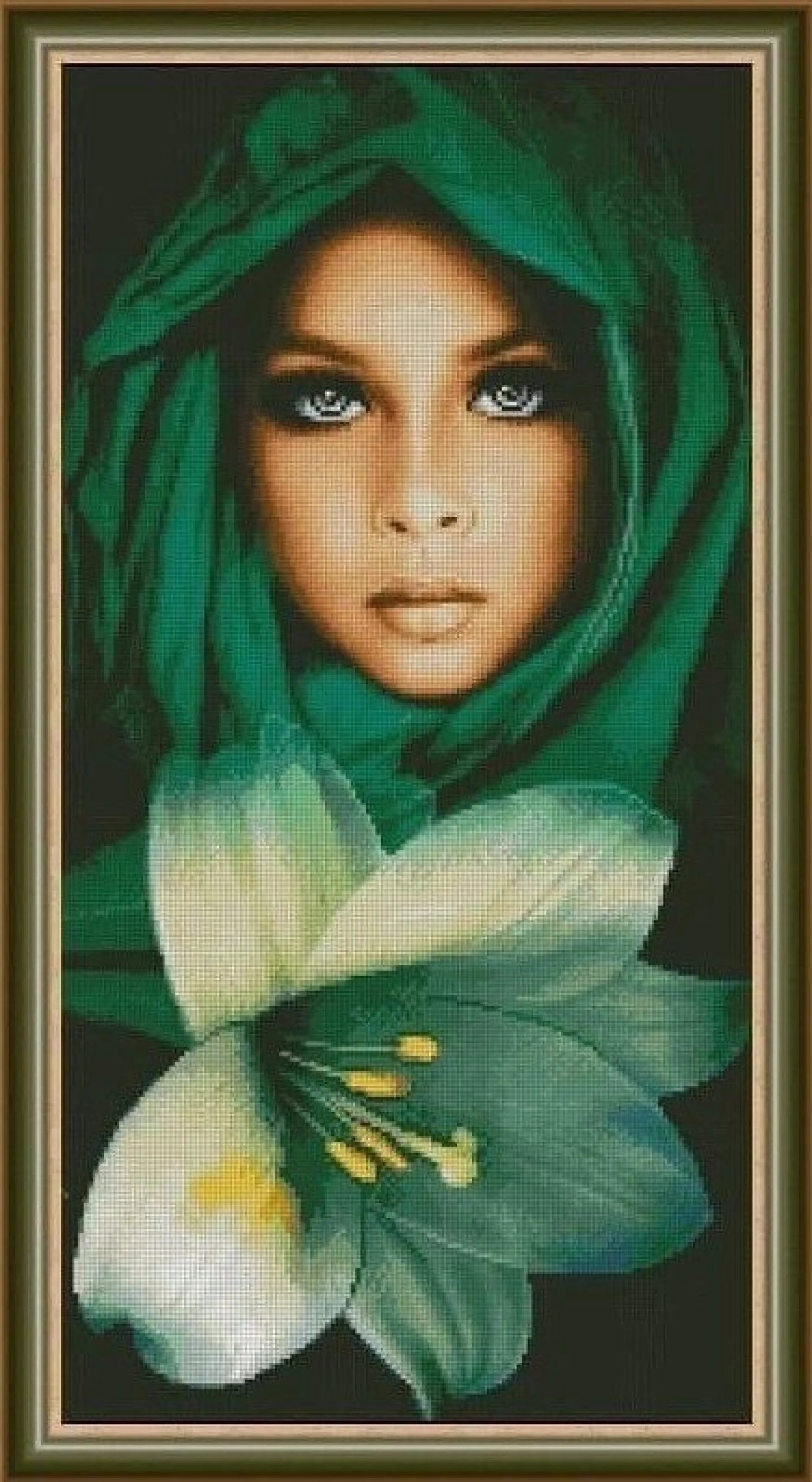 Комплектът на фирма Fantastic-R съдържа панама с игла, черно-бяла схема размер А4 и комплект конци готови за бродиране.