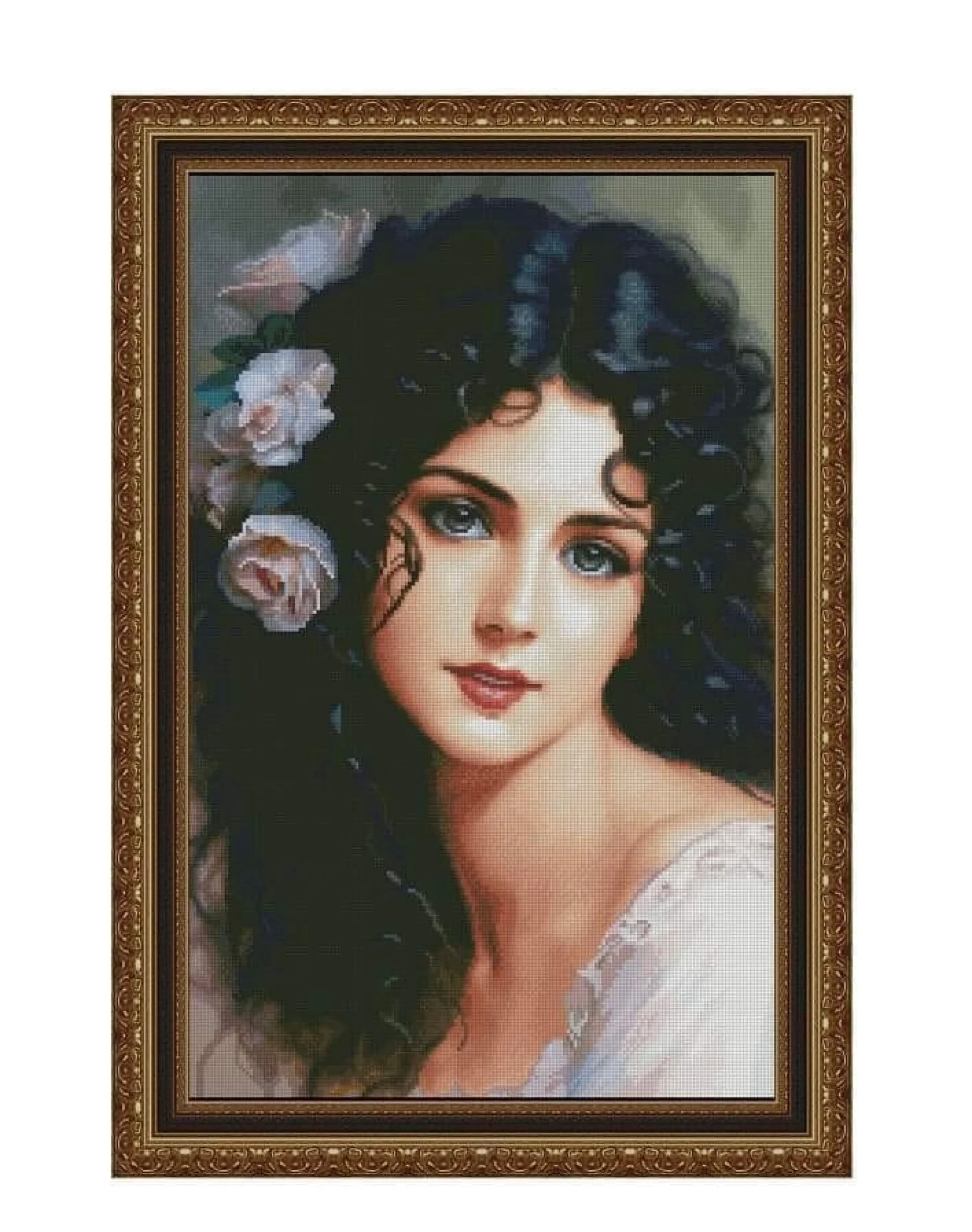 Комплектът на фирма Fantastic-R съдържа панама с игла, черно-бяла схема размер А4 и комплект конци готови за бродиране.