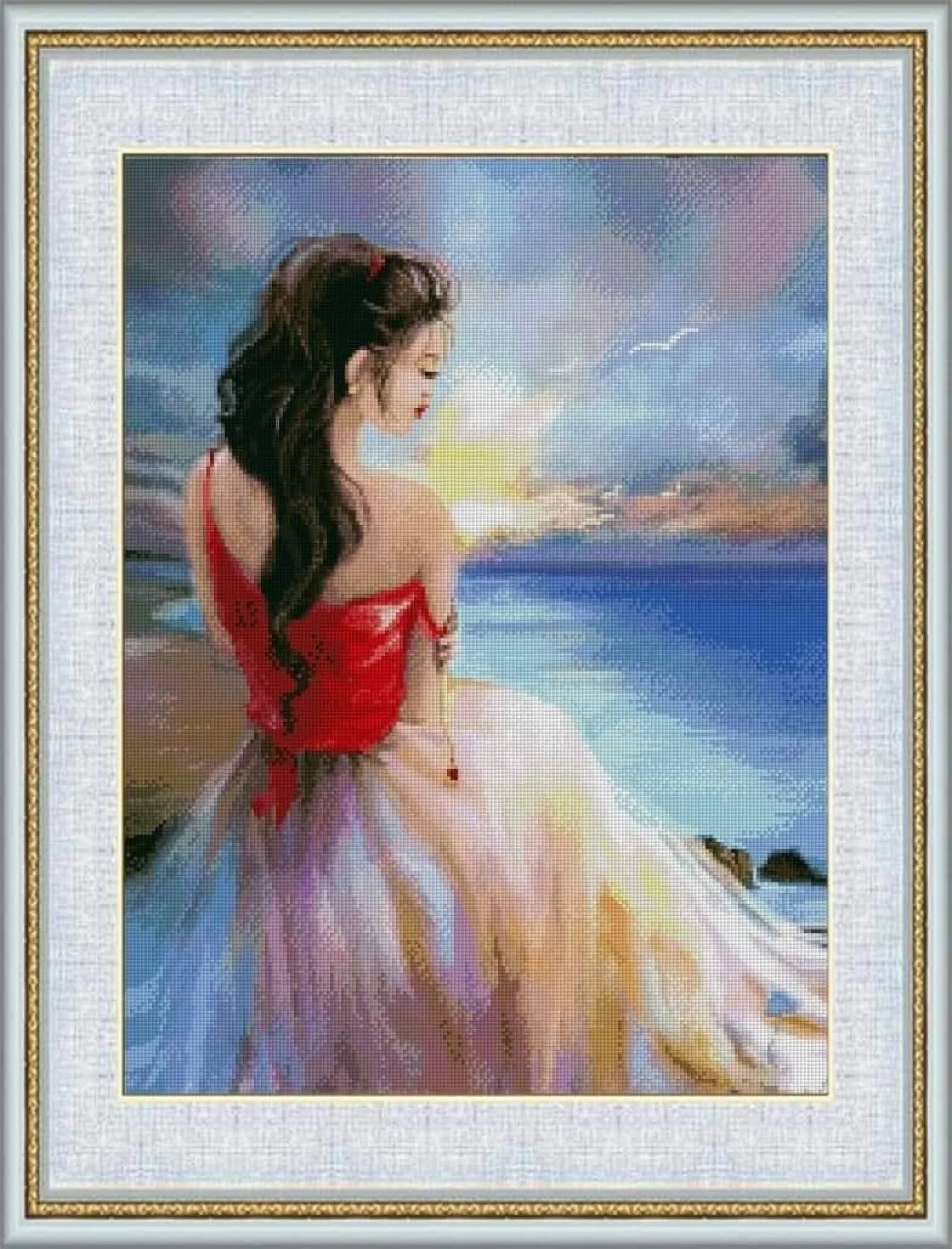Комплектът на фирма Fantastic-R съдържа панама с игла, черно-бяла схема размер А4 и комплект конци готови за бродиране.