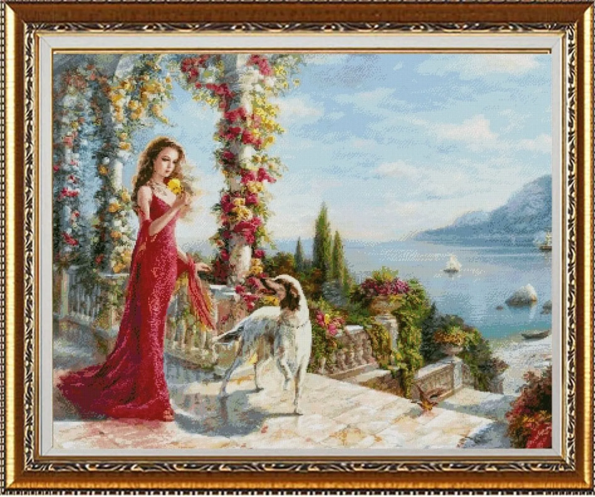 Комплектът на фирма Fantastic-R съдържа панама с игла, черно-бяла схема размер А4 и комплект конци готови за бродиране.