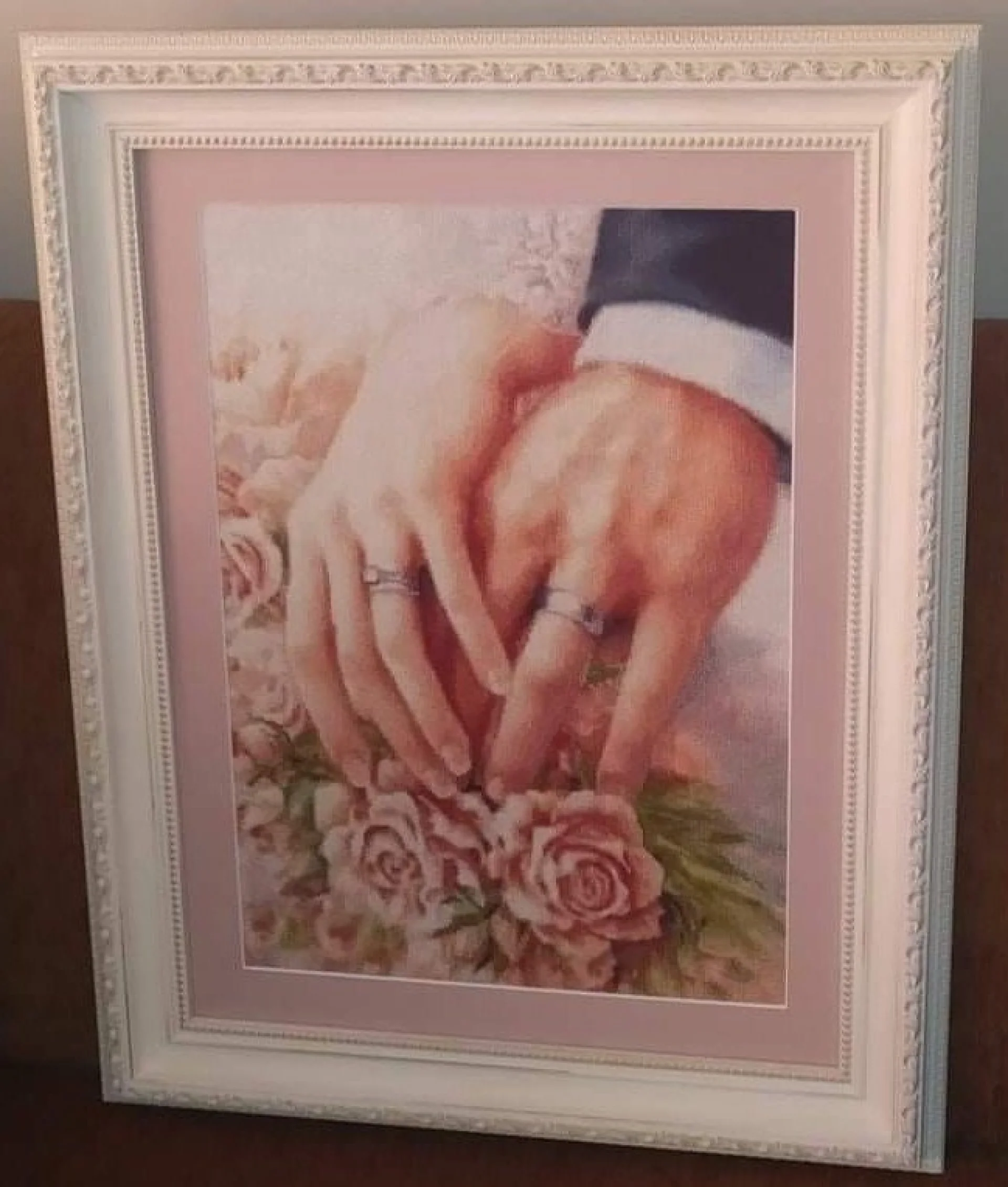 На втората снимка можете да видите гобленът готов и рамкиран.