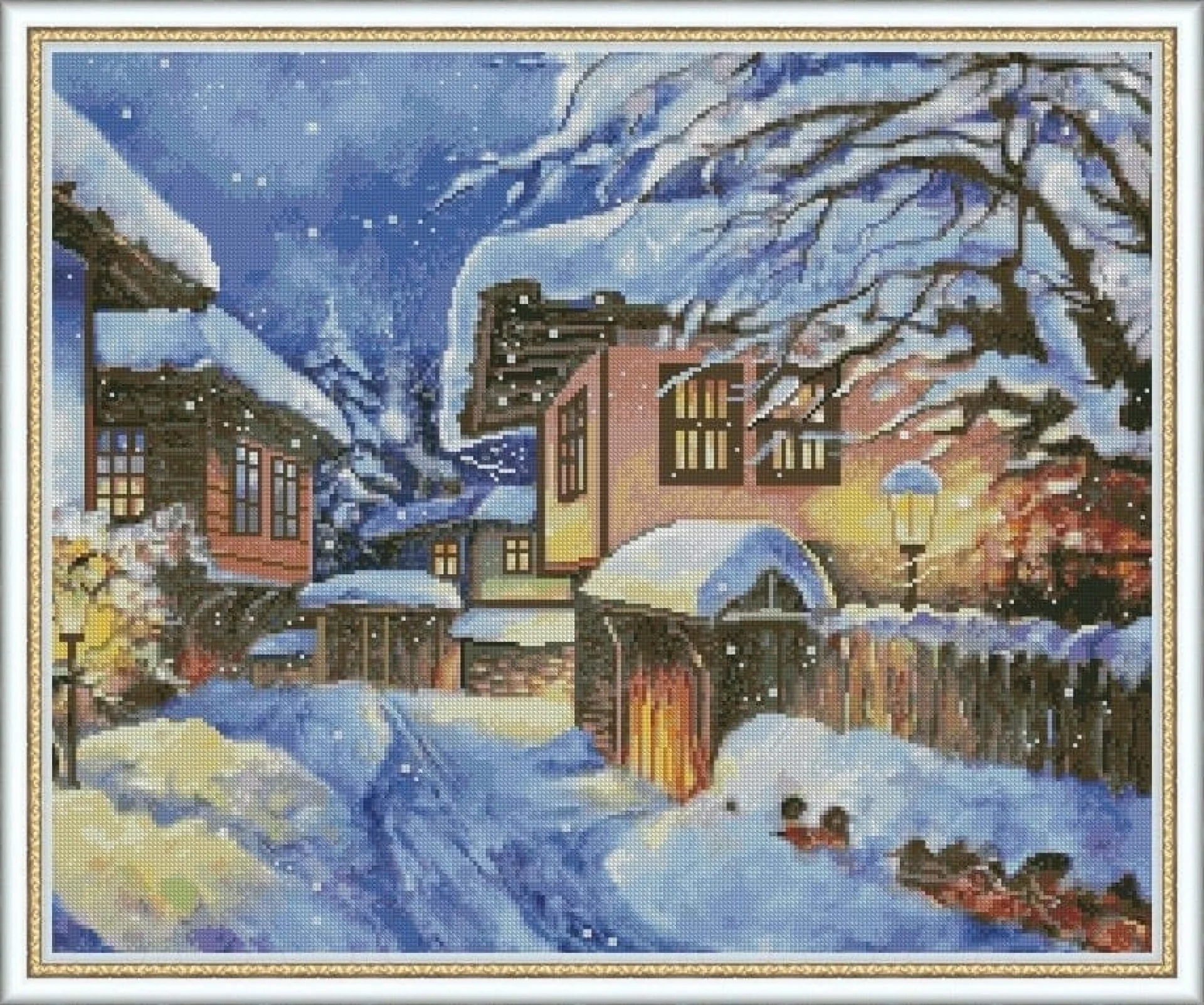 Комплектът на фирма Fantastic-R съдържа панама с игла, черно-бяла схема размер А4 и комплект конци готови за бродиране.