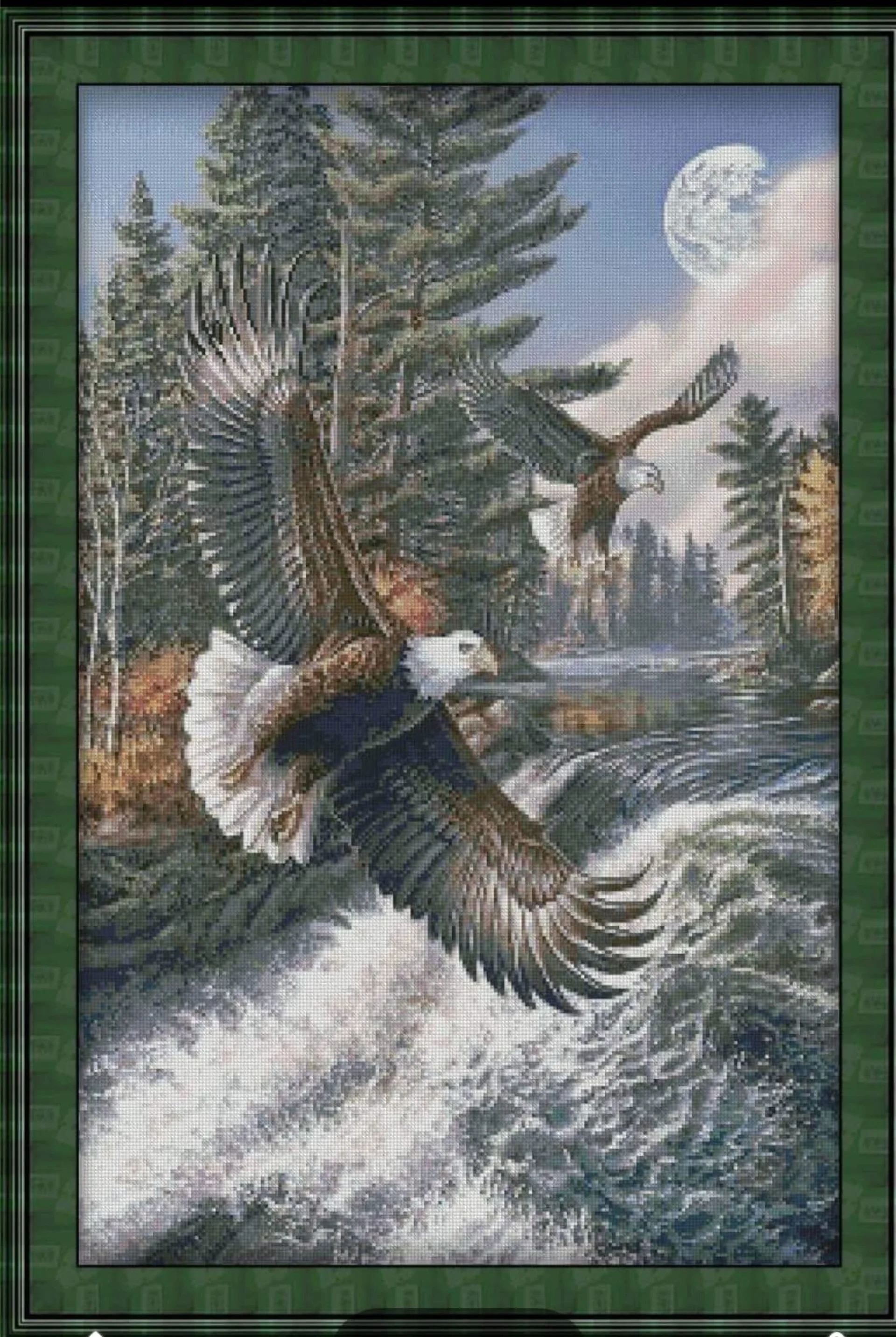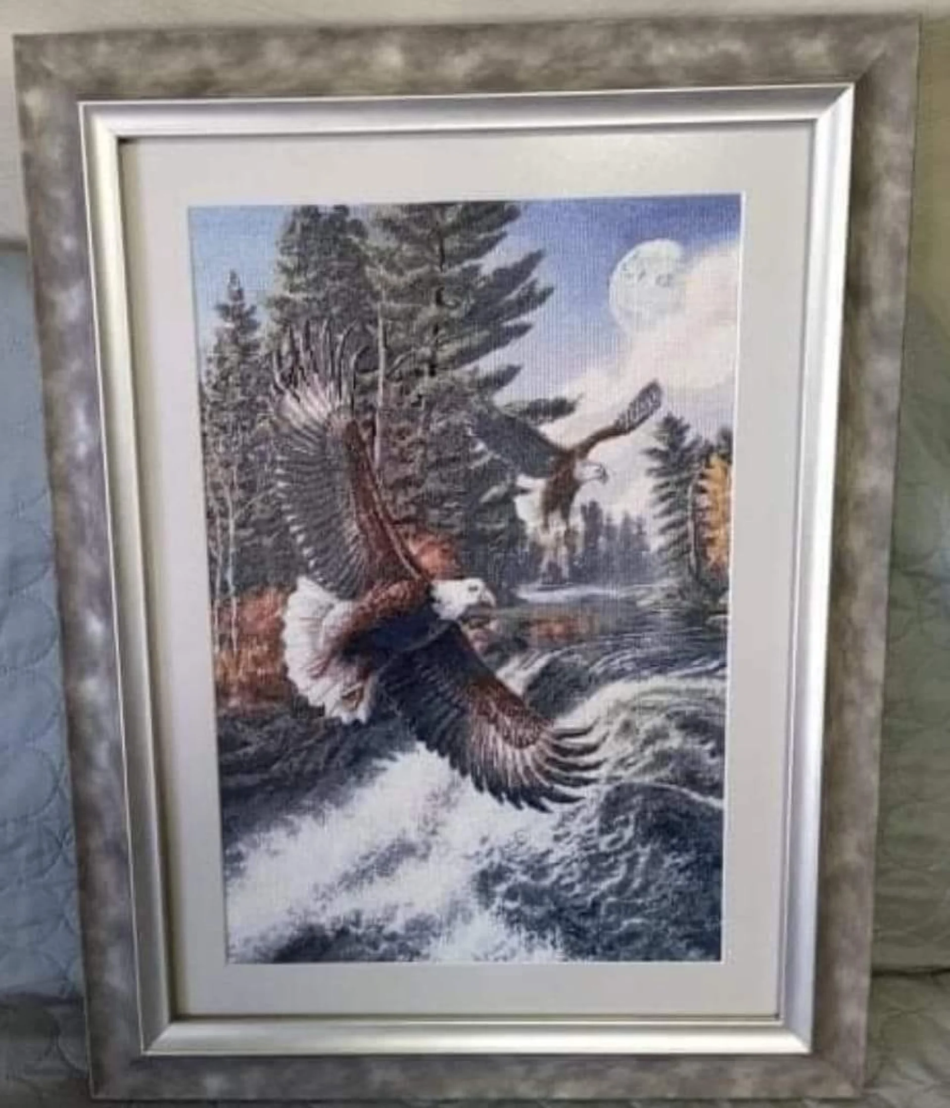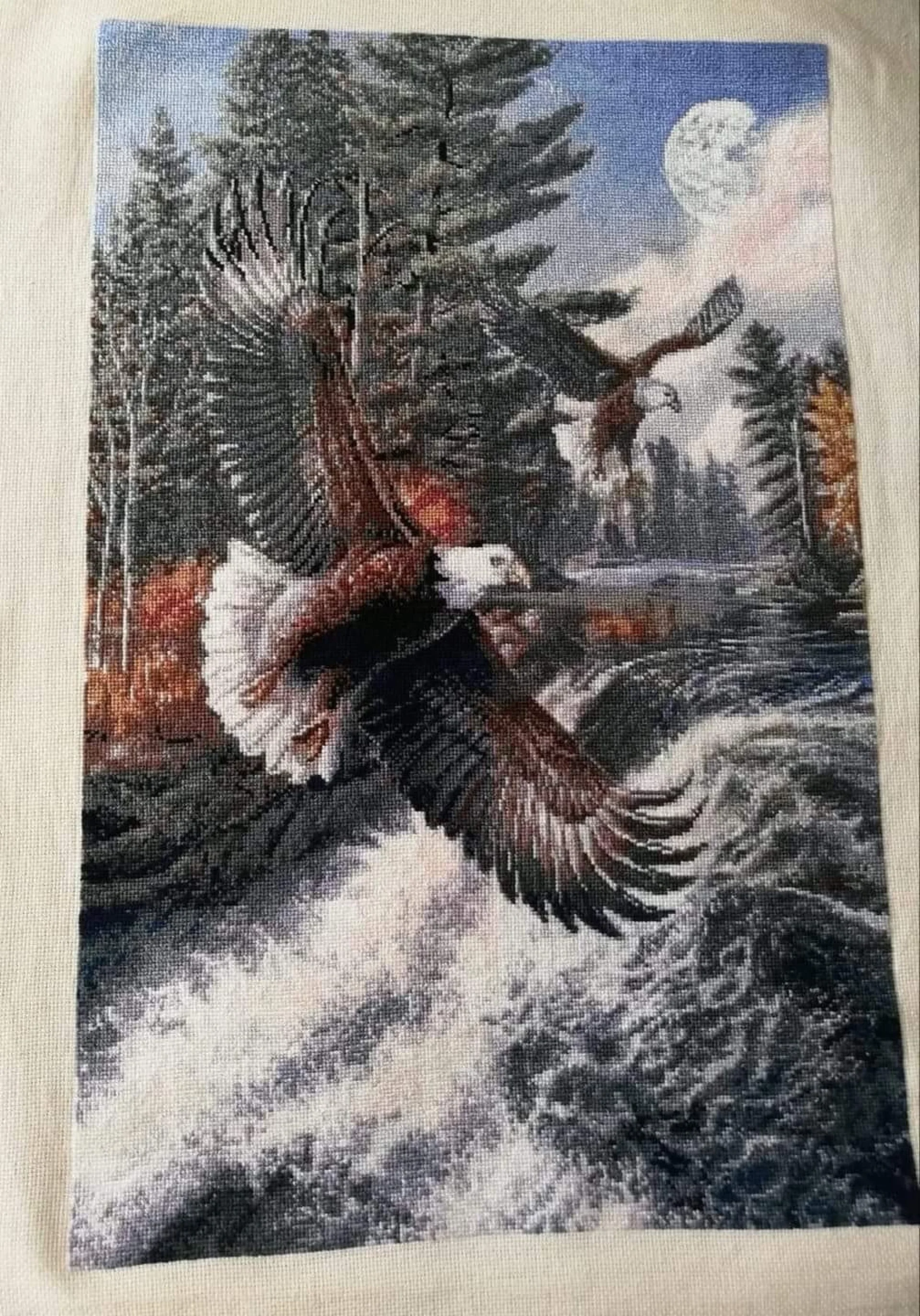 Комплектът на фирма Fantastic-R съдържа панама с игла, черно-бяла схема размер А4 и комплект конци готови за бродиране.