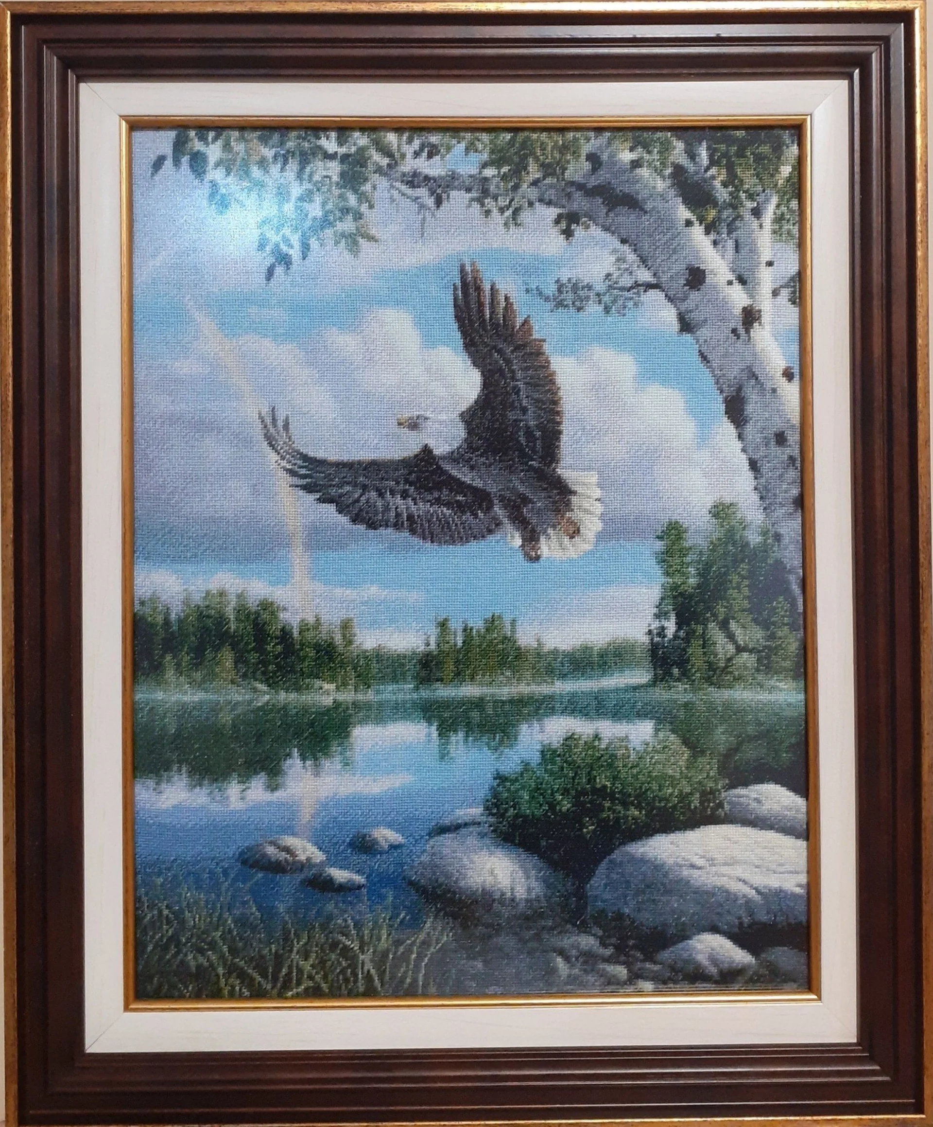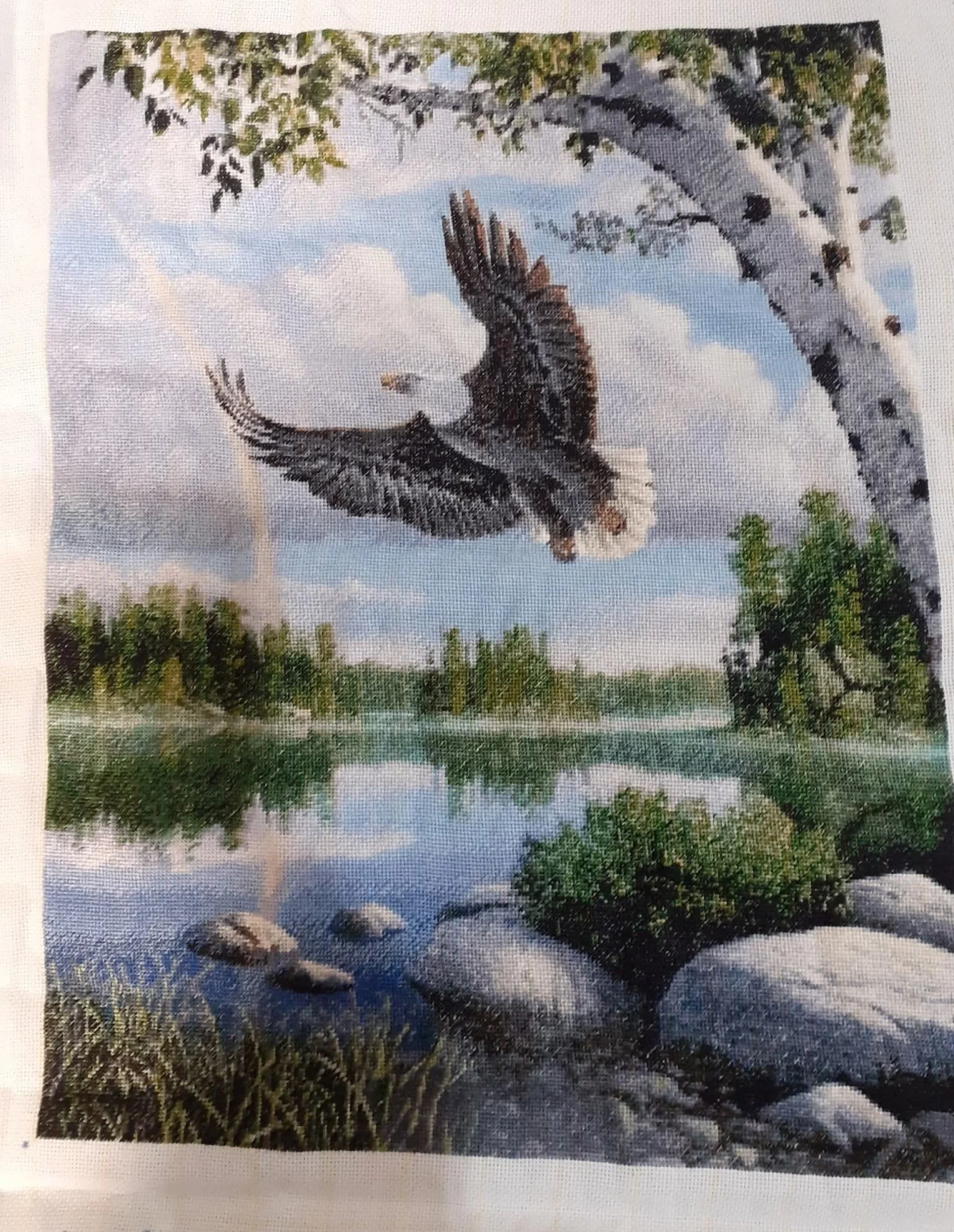 Комплектът на фирма Fantastic-R съдържа панама с игла, черно-бяла схема размер А4 и комплект конци готови за бродиране.