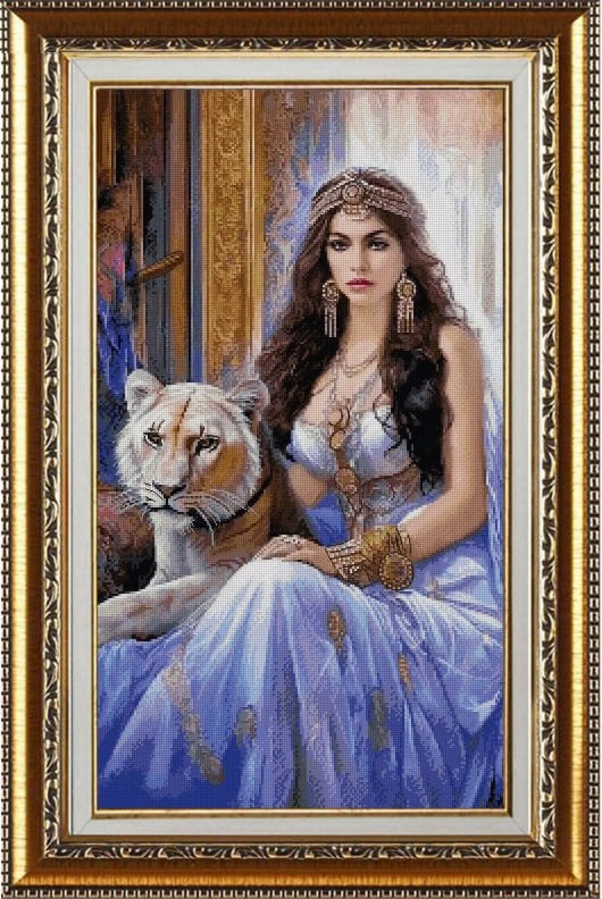 Комплектът на фирма Fantastic-R съдържа панама с игла, черно-бяла схема размер А4 и комплект конци готови за бродиране.