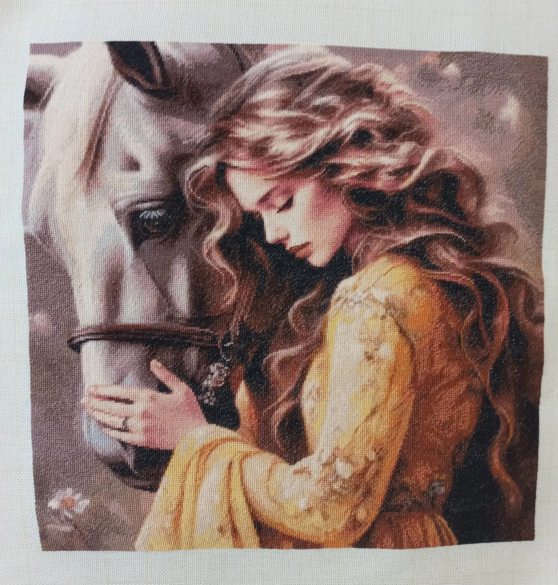 Комплектът на фирма Fantastic-R съдържа панама с игла, черно-бяла схема размер А4 и комплект конци готови за бродиране.