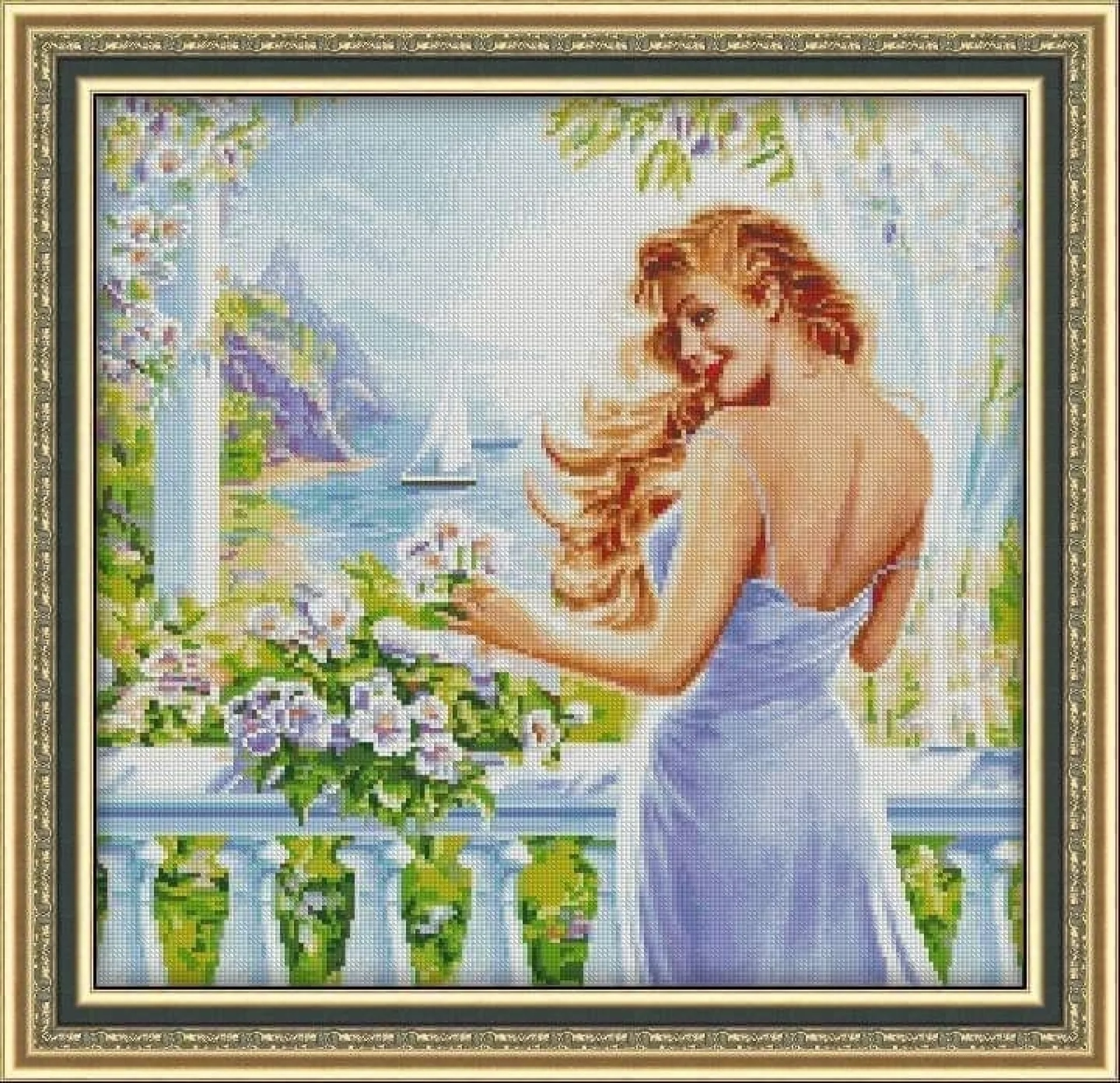 Комплектът на фирма Fantastic-R съдържа панама с игла, черно-бяла схема размер А4 и комплект конци готови за бродиране.