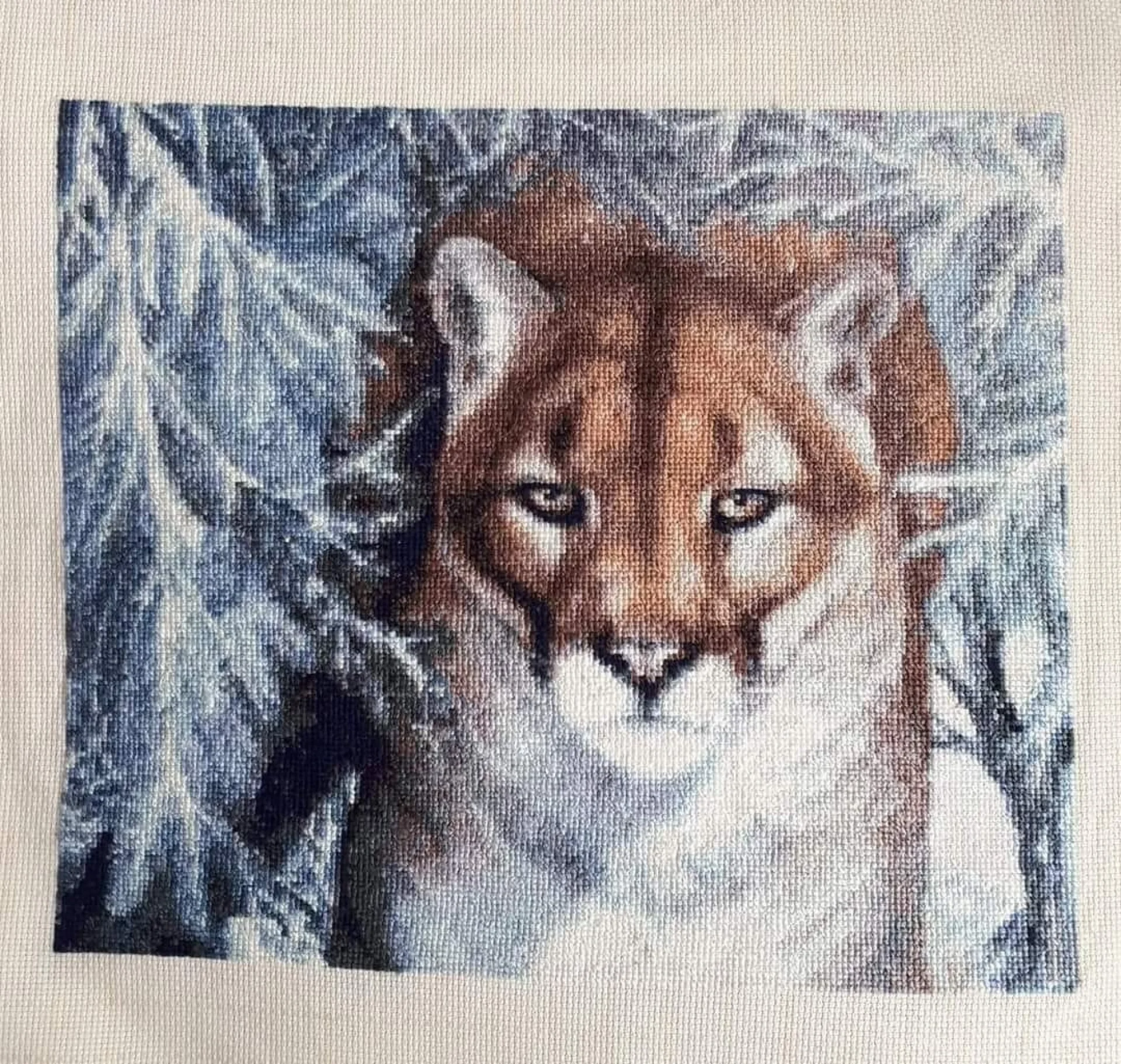 Комплектът на фирма Fantastic-R съдържа панама с игла, черно-бяла схема размер А4 и комплект конци готови за бродиране.