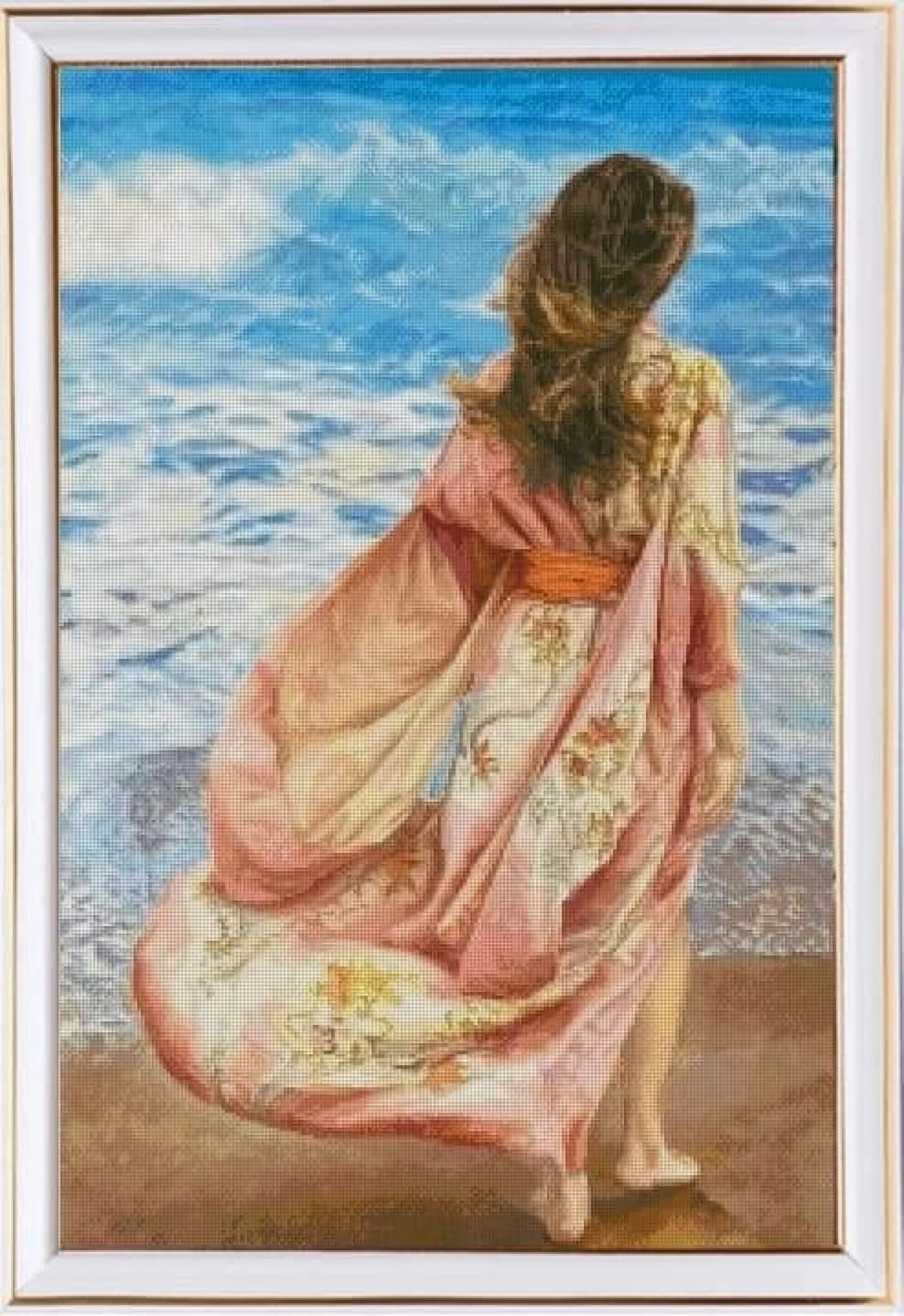 Комплектът на фирма Fantastic-R съдържа панама с игла, черно-бяла схема размер А4 и комплект конци готови за бродиране.