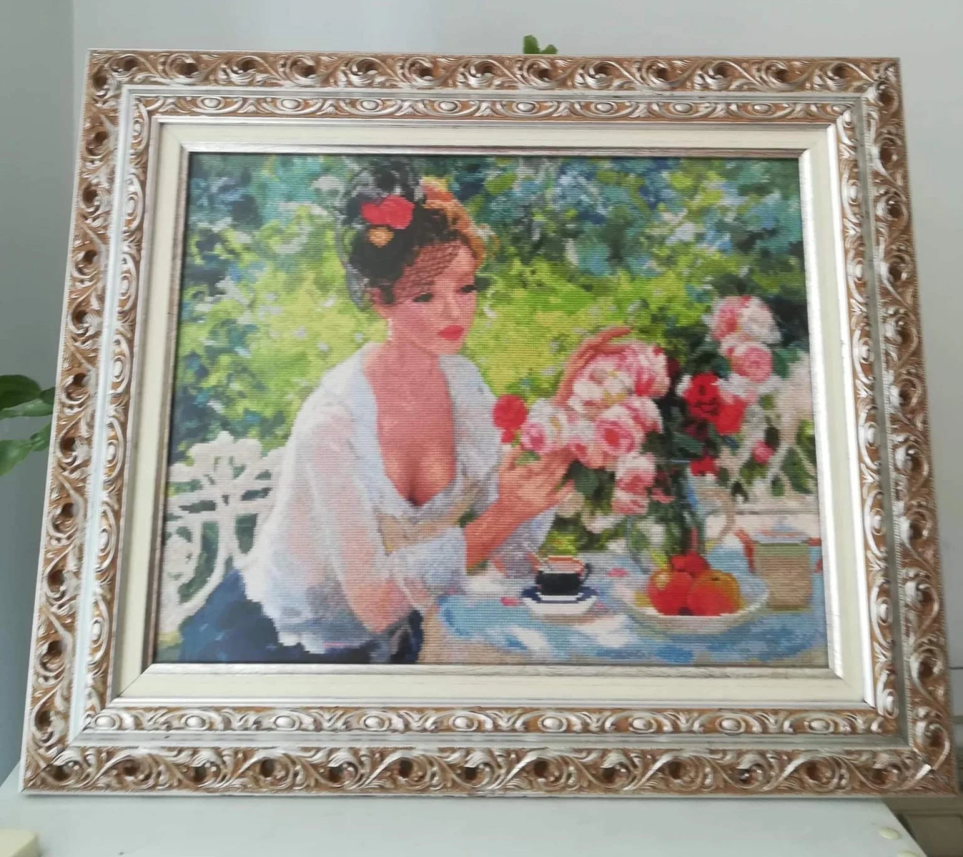На втора и трета снимка можете да видите гобленът готов рамкиран и отшив.