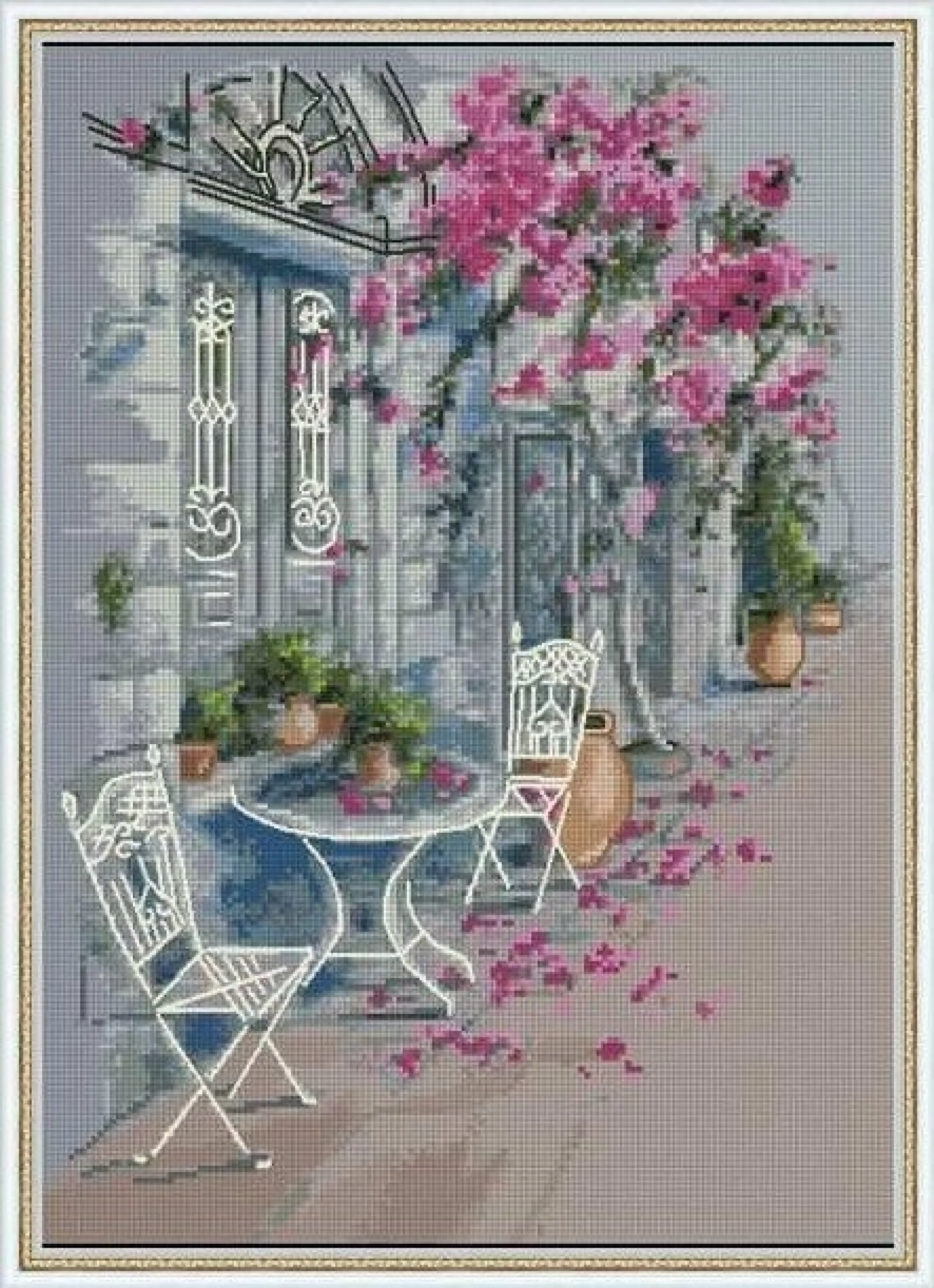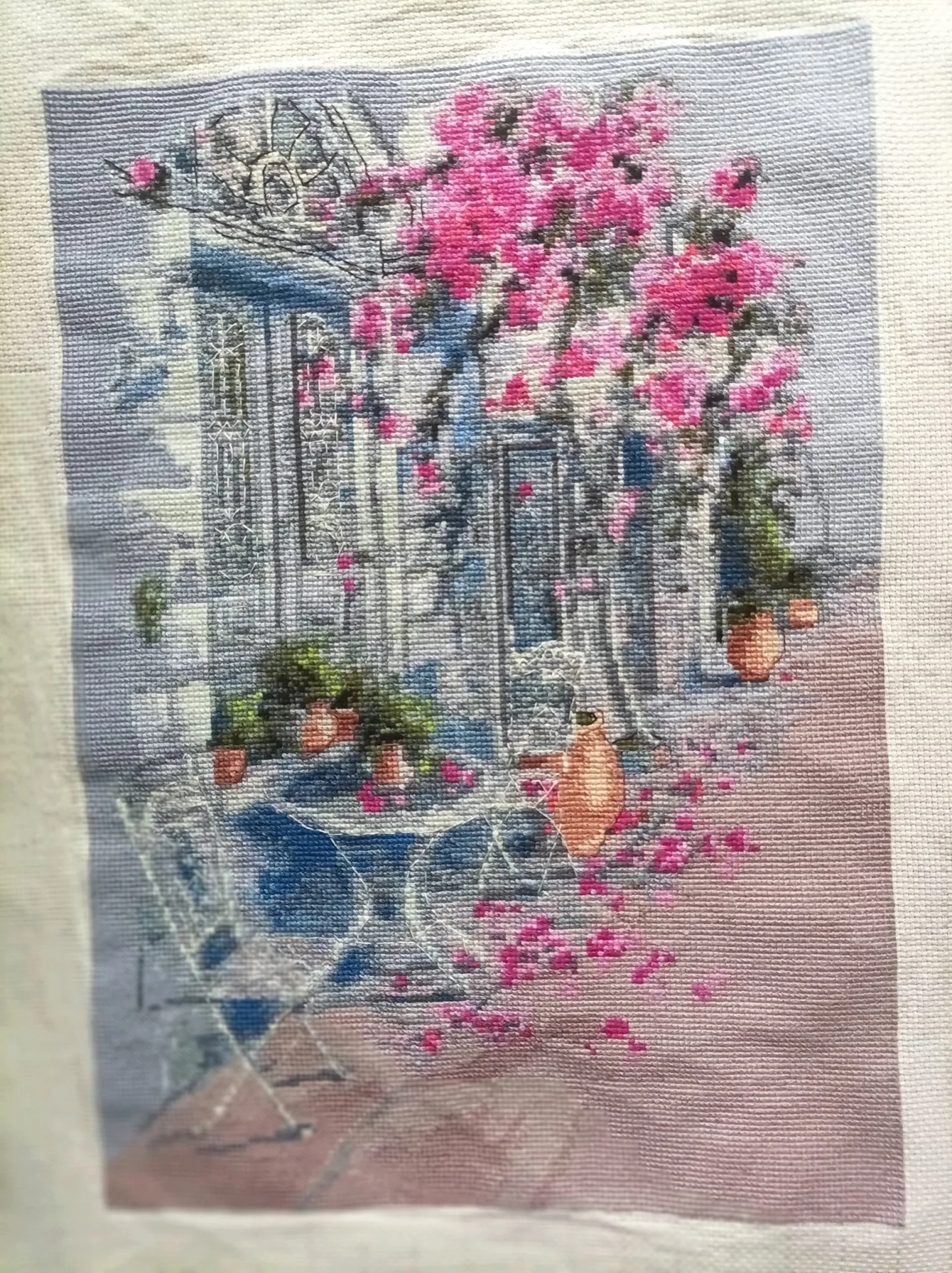 Комплектът на фирма Fantastic-R съдържа панама с игла, черно-бяла схема размер А4 и комплект конци готови за бродиране.