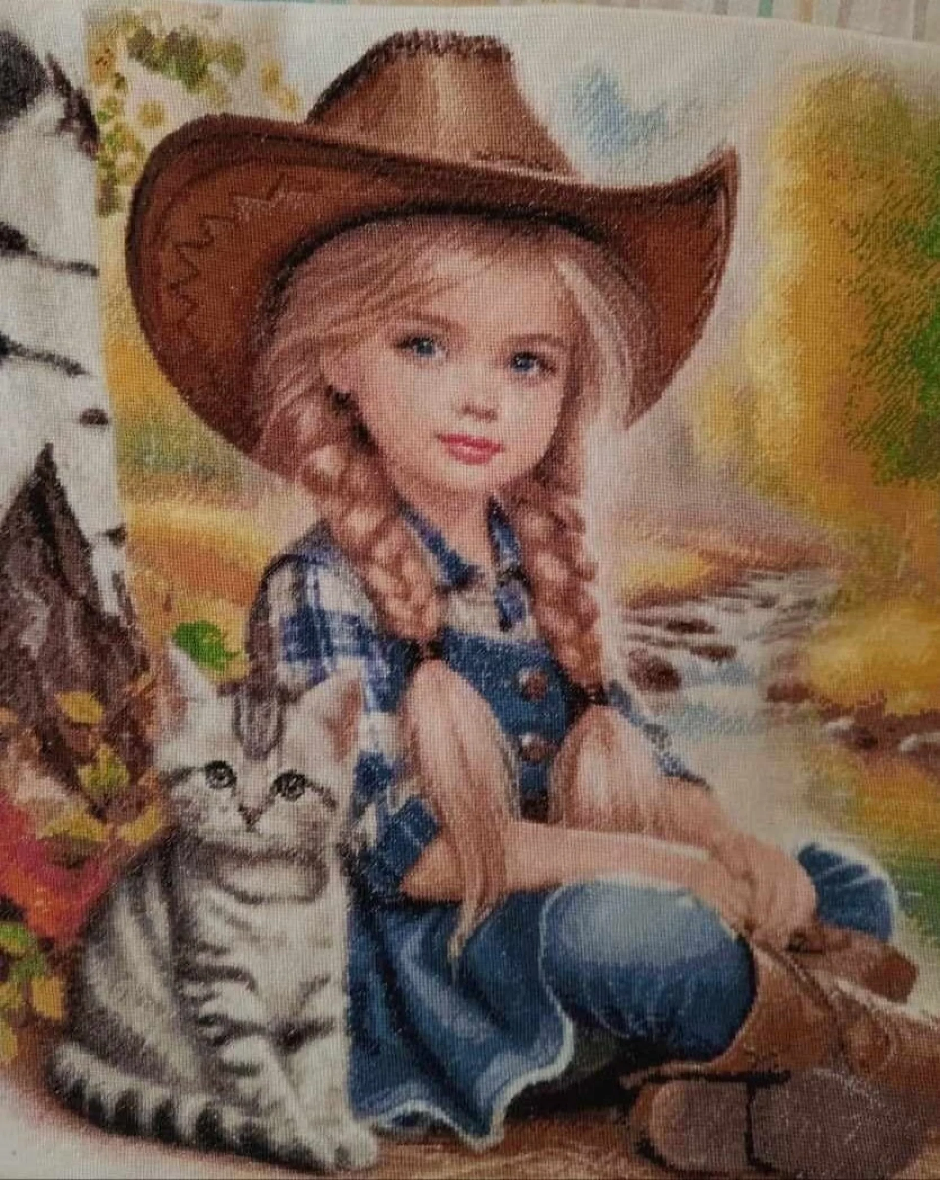 Комплектът на фирма Fantastic-R съдържа панама с игла, черно-бяла схема размер А4 и комплект конци готови за бродиране.