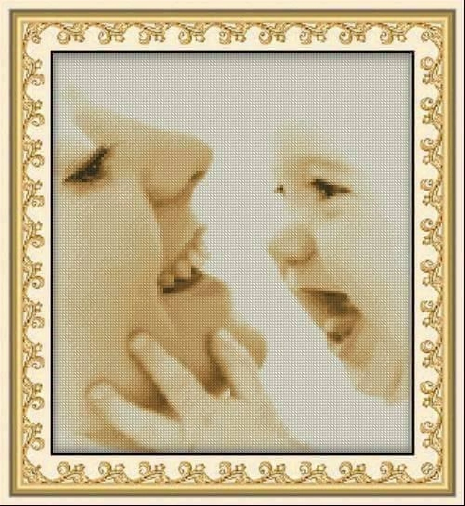 Комплектът на фирма Fantastic-R съдържа панама с игла, черно-бяла схема размер А4 и комплект конци готови за бродиране.