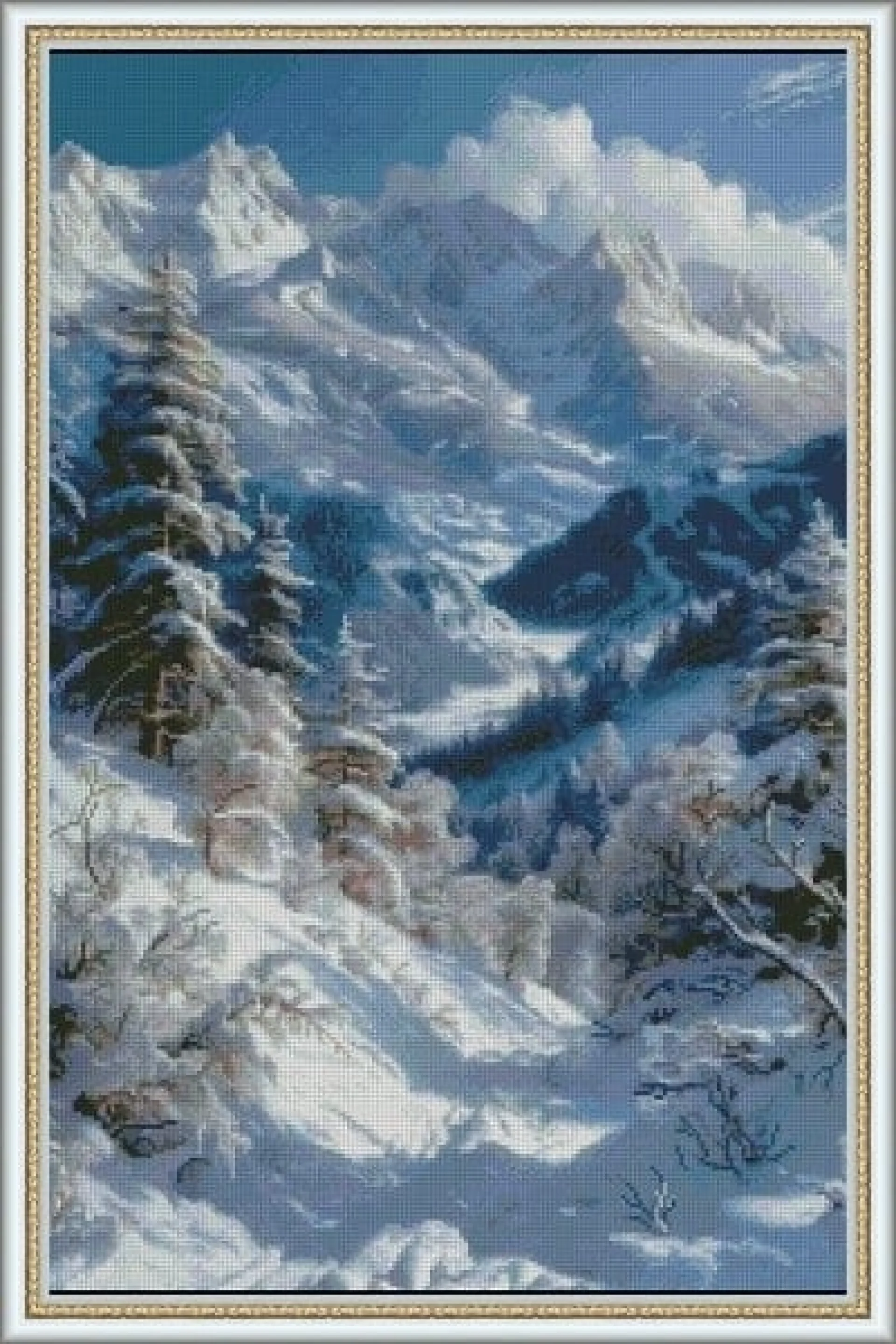 Комплектът на фирма Fantastic-R съдържа панама с игла, черно-бяла схема размер А4 и комплект конци готови за бродиране.
