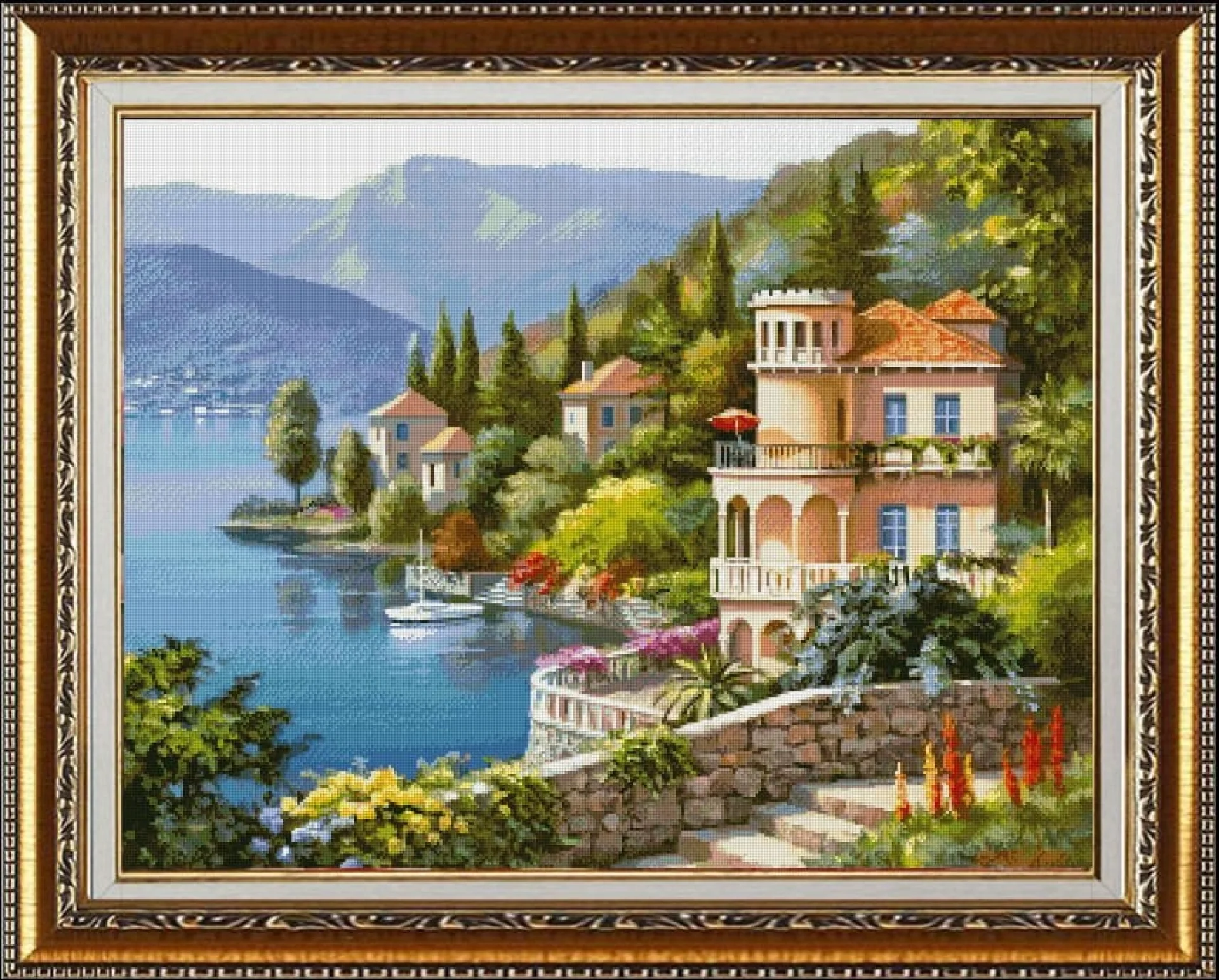 Комплектът на фирма Fantastic-R съдържа панама с игла, черно-бяла схема размер А4 и комплект конци готови за бродиране.