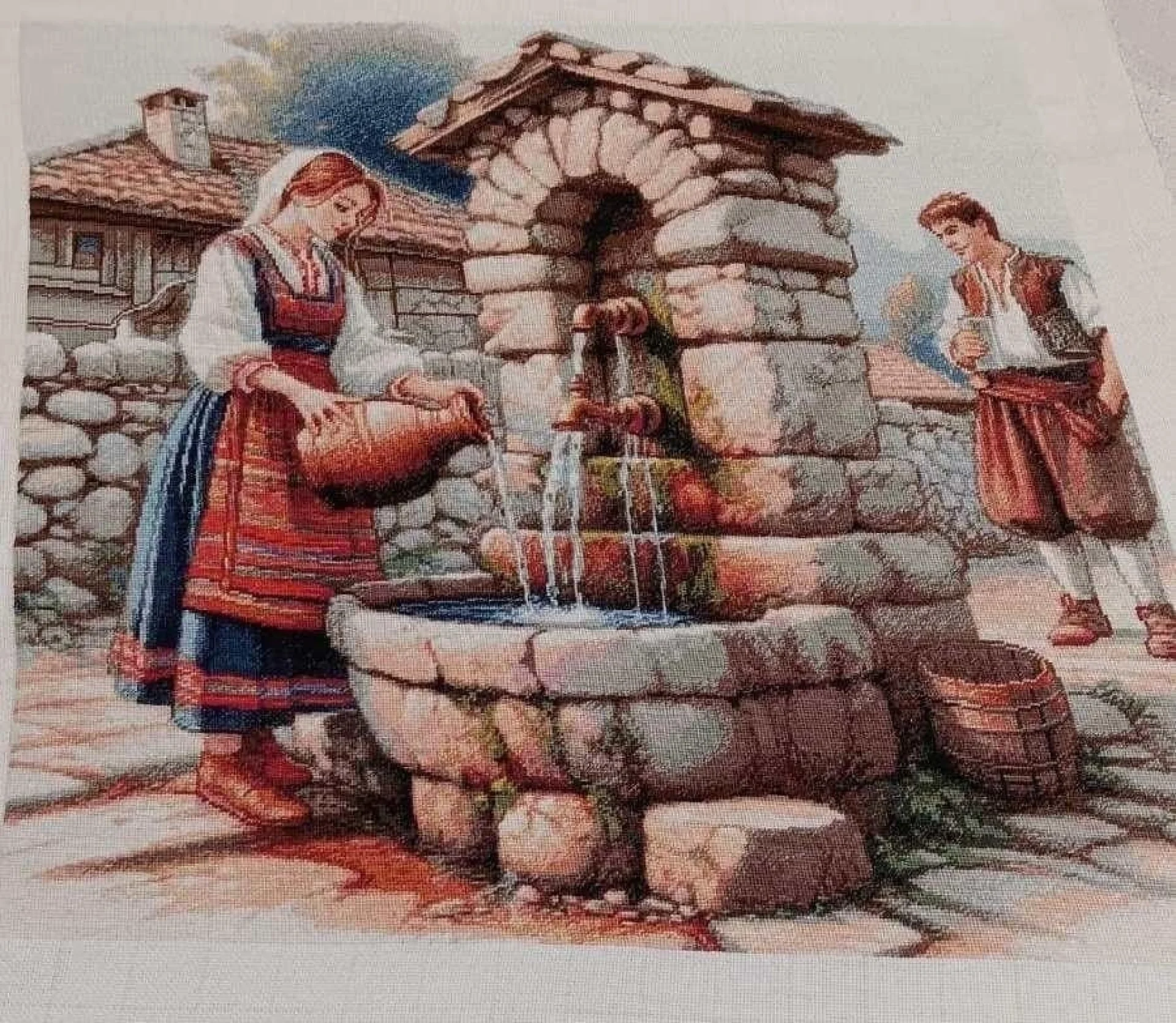Комплектът на фирма Fantastic-R съдържа панама с игла, черно-бяла схема размер А4 и комплект конци готови за бродиране.