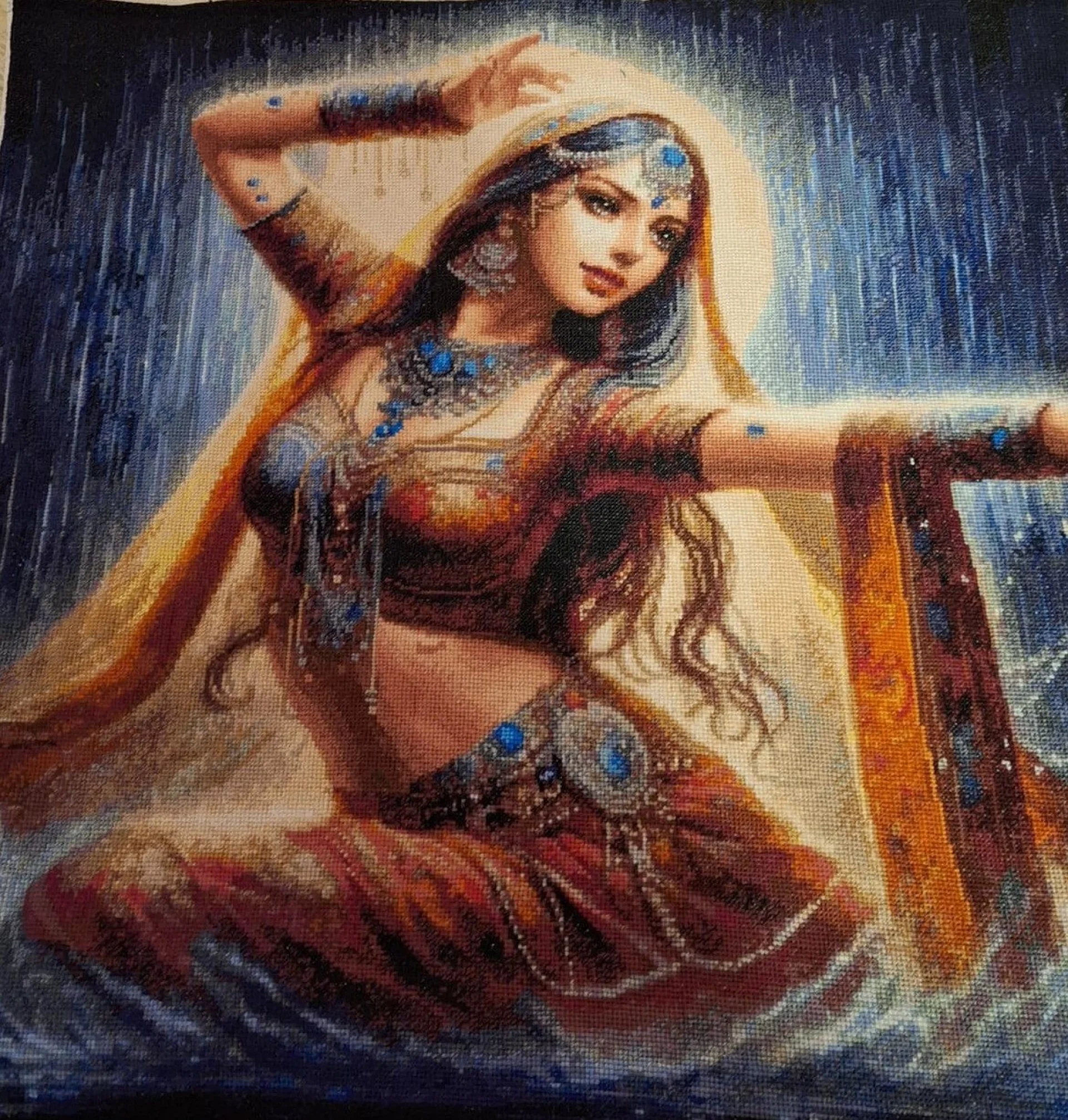 Комплектът на фирма Fantastic-R съдържа панама с игла, черно-бяла схема размер А4 и комплект конци готови за бродиране.