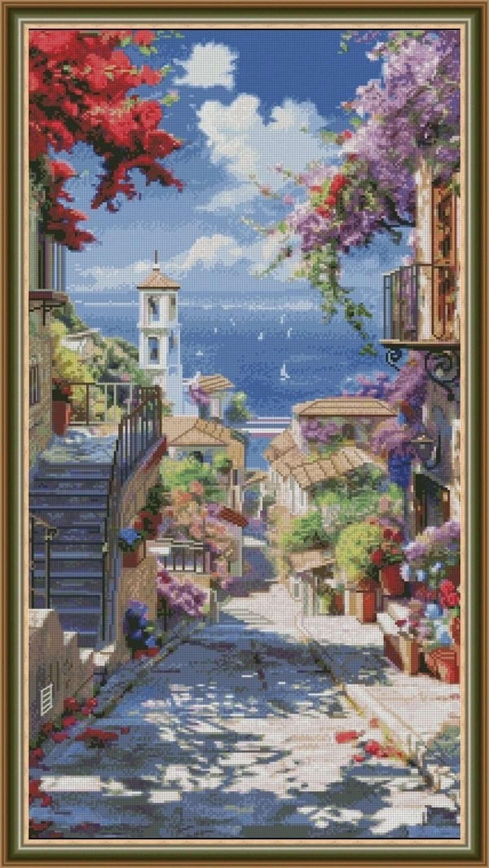 Комплектът на фирма Fantastic-R съдържа панама с игла, черно-бяла схема размер А4 и комплект конци готови за бродиране.