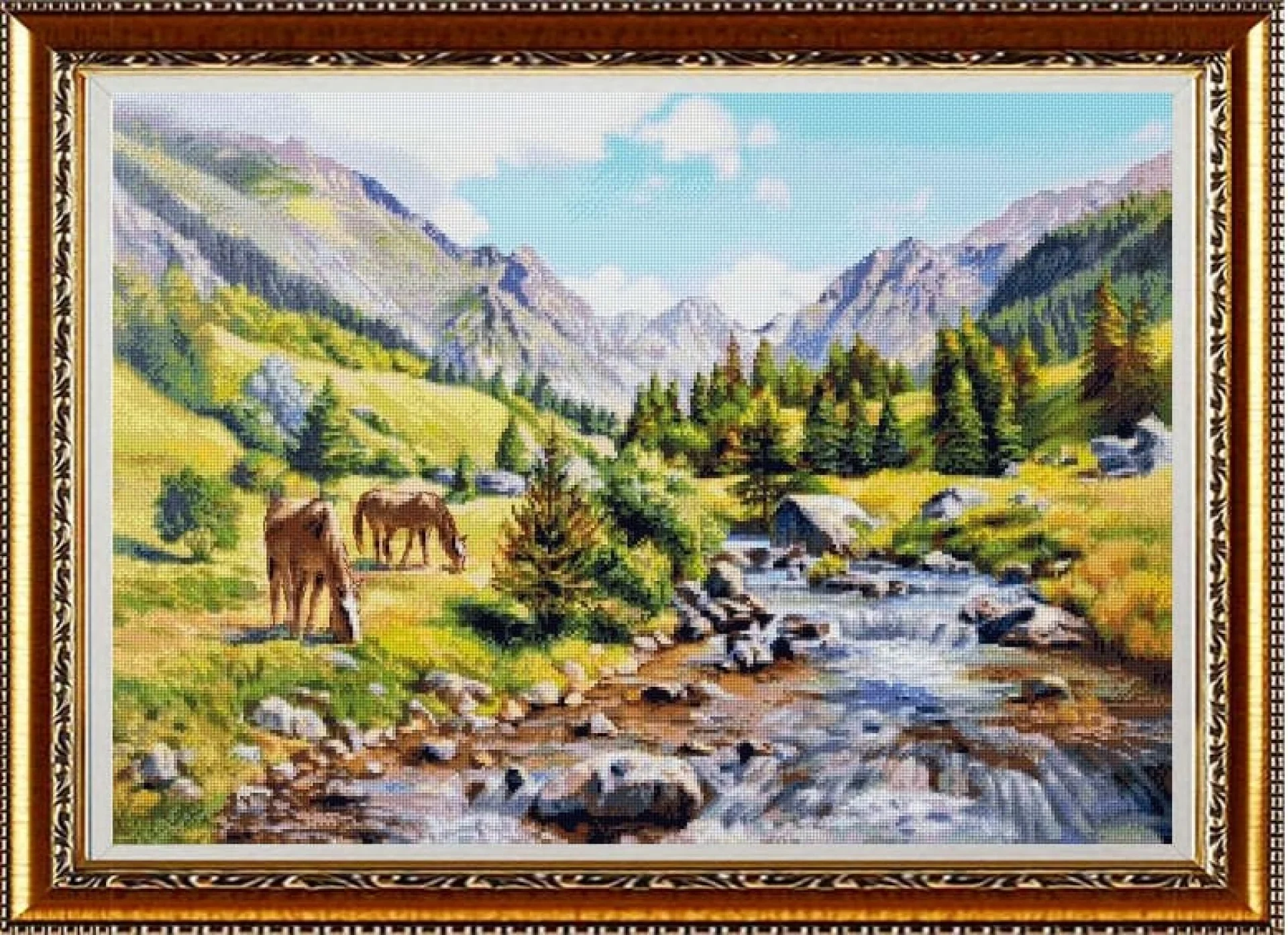 Комплектът на фирма Fantastic-R съдържа панама с игла, черно-бяла схема размер А4 и комплект конци готови за бродиране.